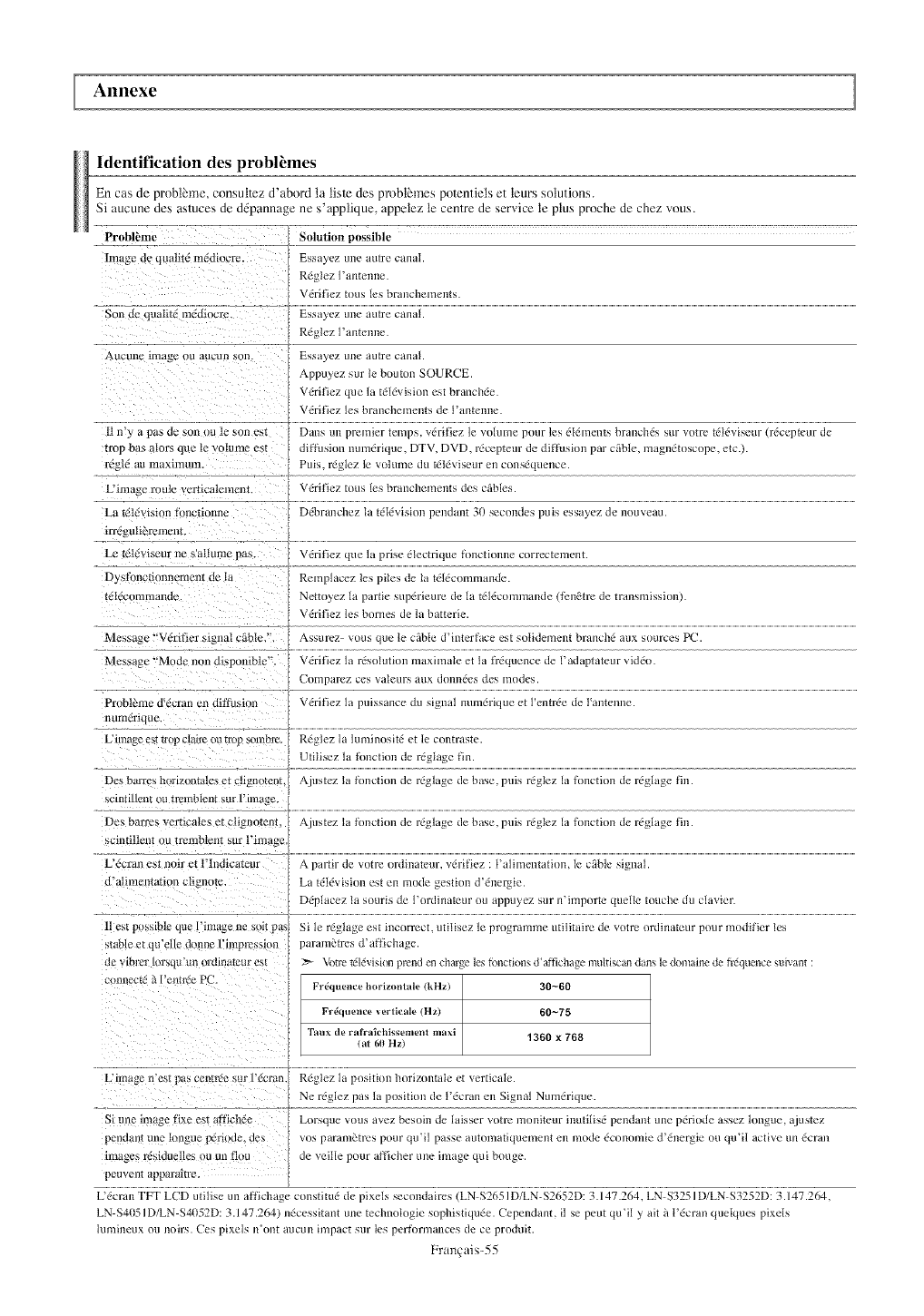 • N'amchez DaS une "nage _ixe sur I'_cran LOB plus de 2 heures. Cela 3ourral_ DreVoauer une remanence ae mage a lecran.