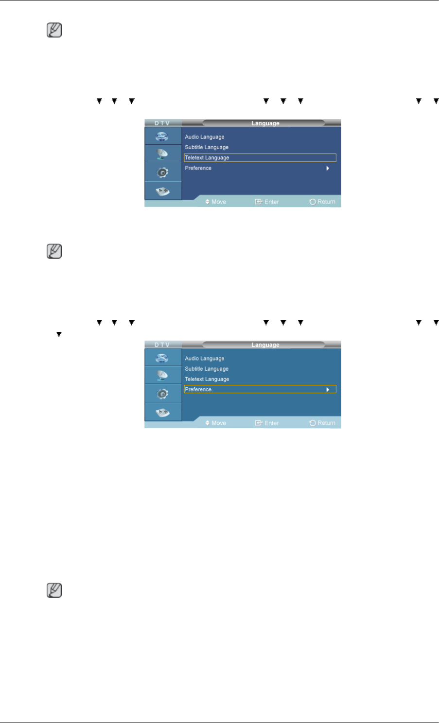 •If you change the language setting, the Subtitle Language, Audio Language, and the Teletext Lan-