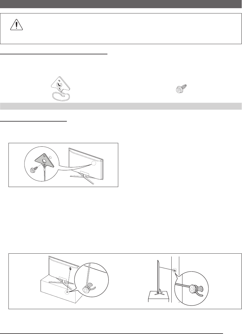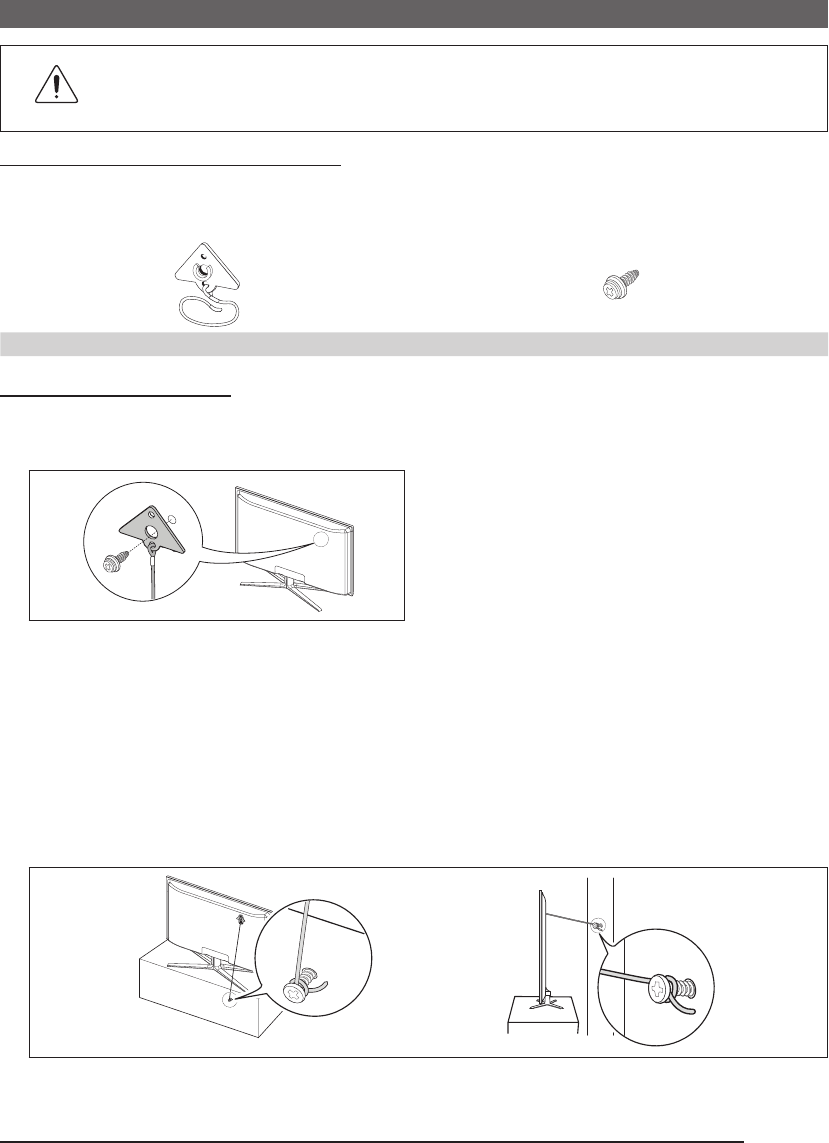 When using a stand or wall-mount, use parts provided by Samsung Electronics only.
