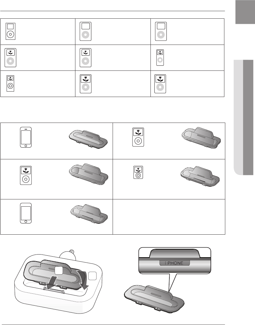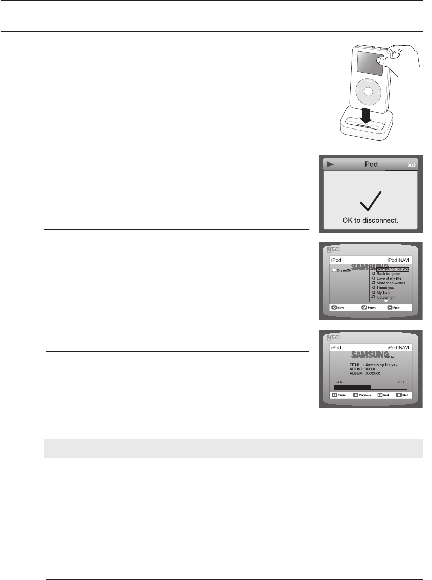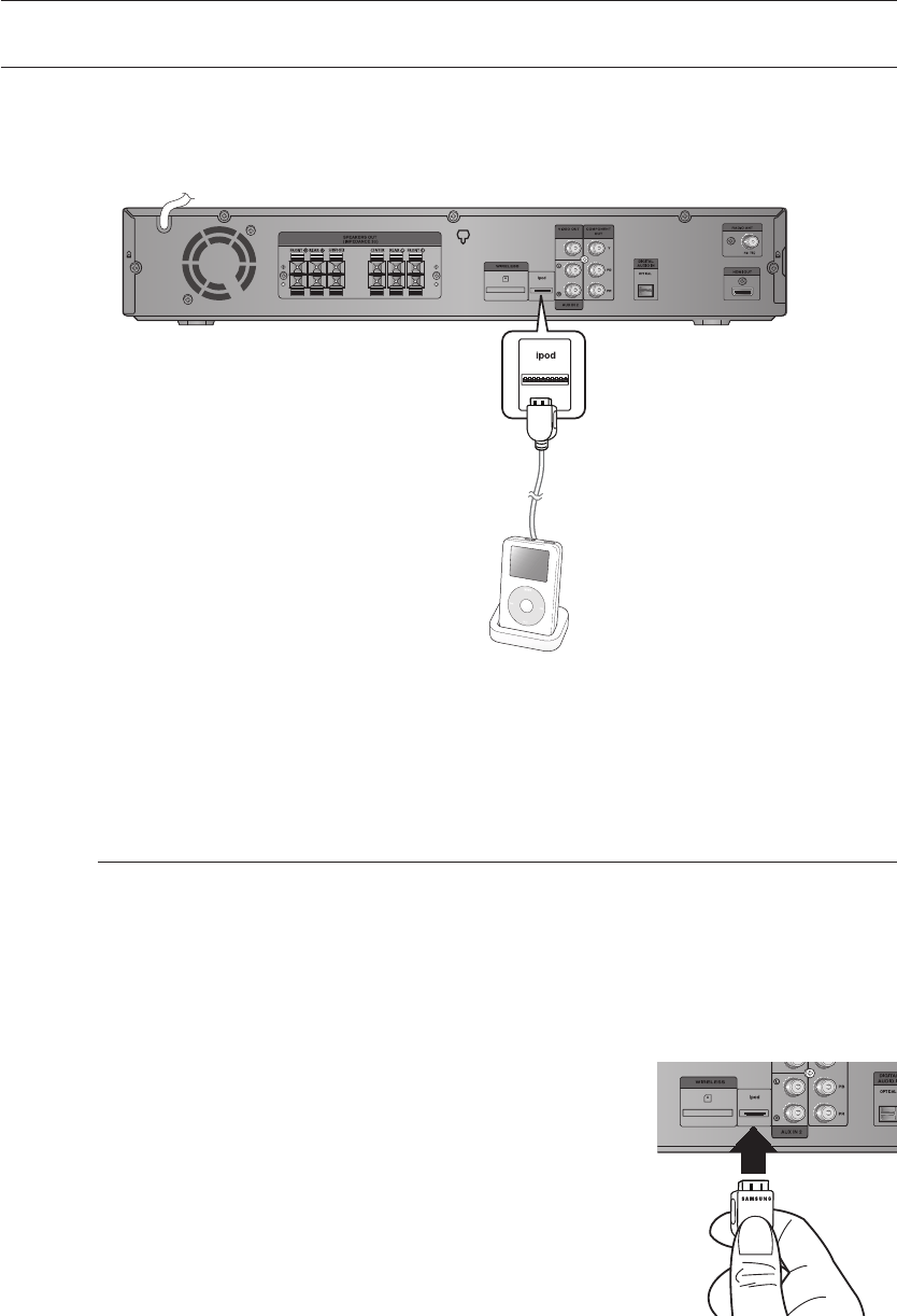 You can enjoy music files by your connecting iPod to the home theater with the supplied iPod dock.