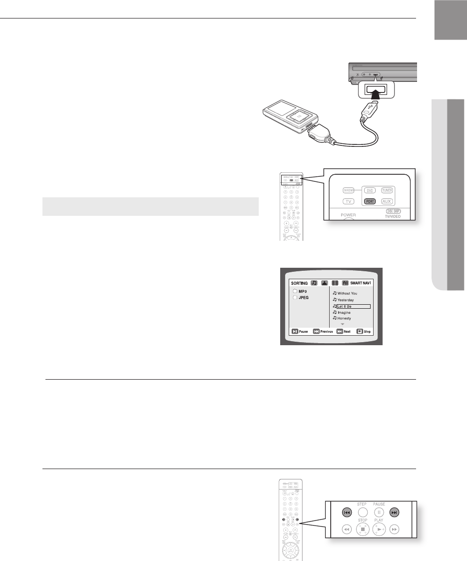 You can enjoy media files such as pictures, movies and music saved on an MP3 player, digital camera or USB memory stick by