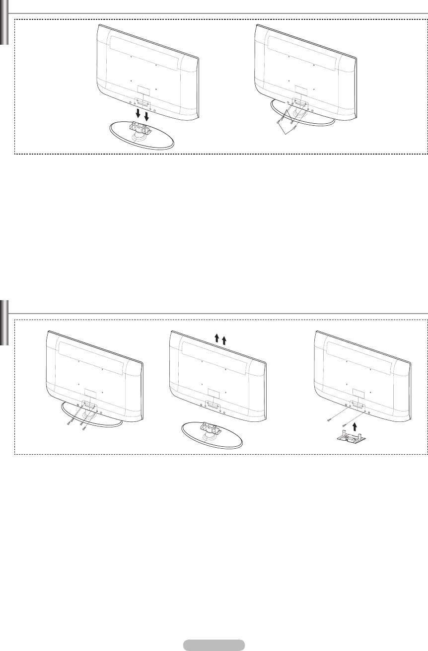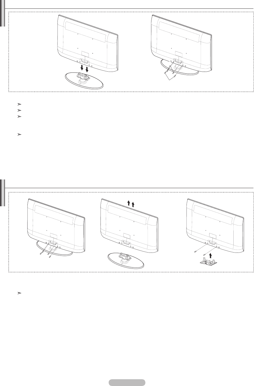 Levante el producto y apriete los tornillos. Si aprieta los tornillos con el TV LCD tumbado, éste se puede inclinar hacia