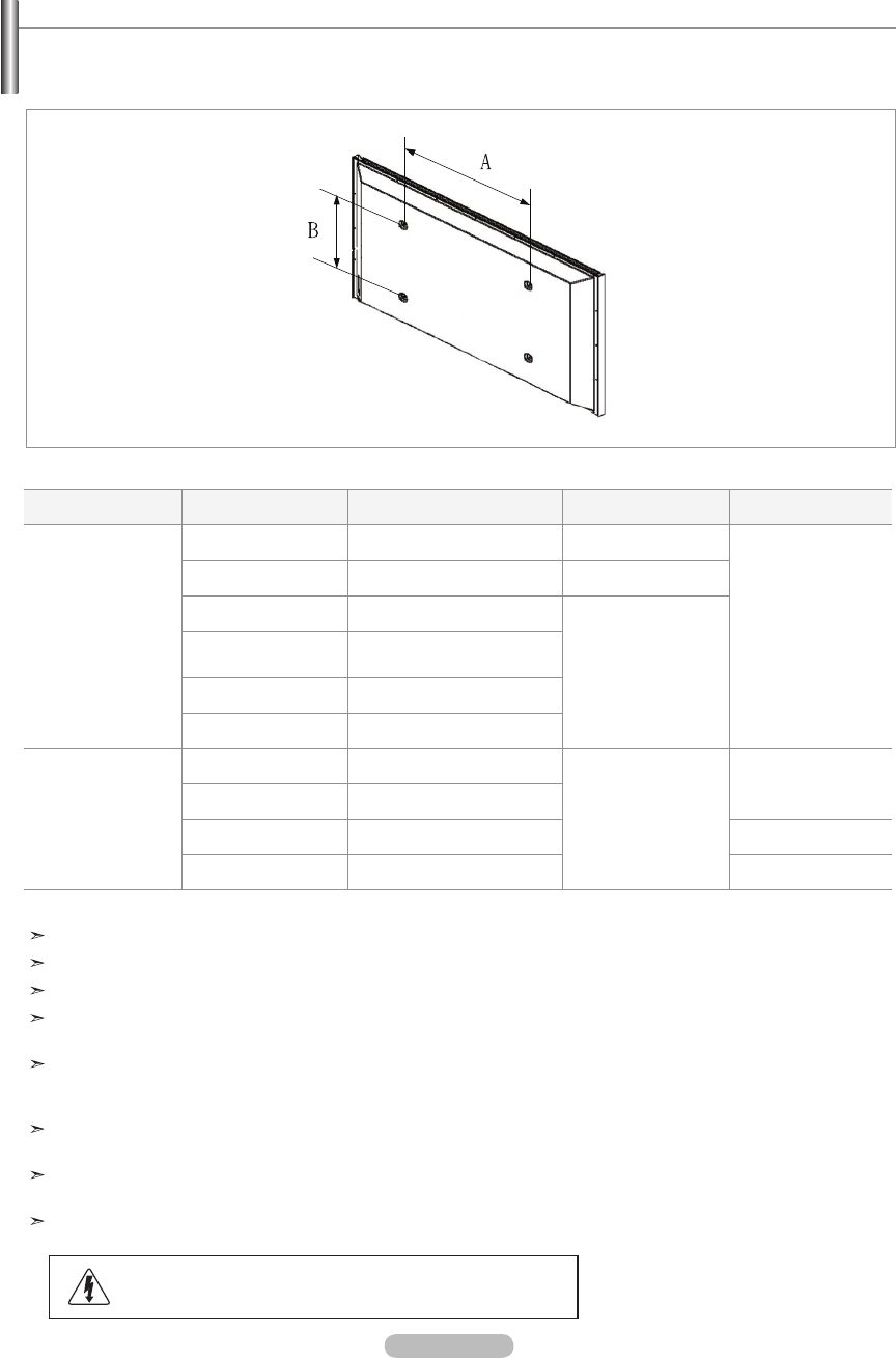 No use tornillos con un tamaño superior al estándar, ya que pueden causar daños en el interior del televisor.