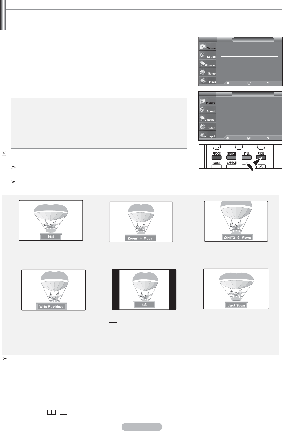 On LCD models that offer picture sizing features, use these controls to view different formats as a full screen picture.