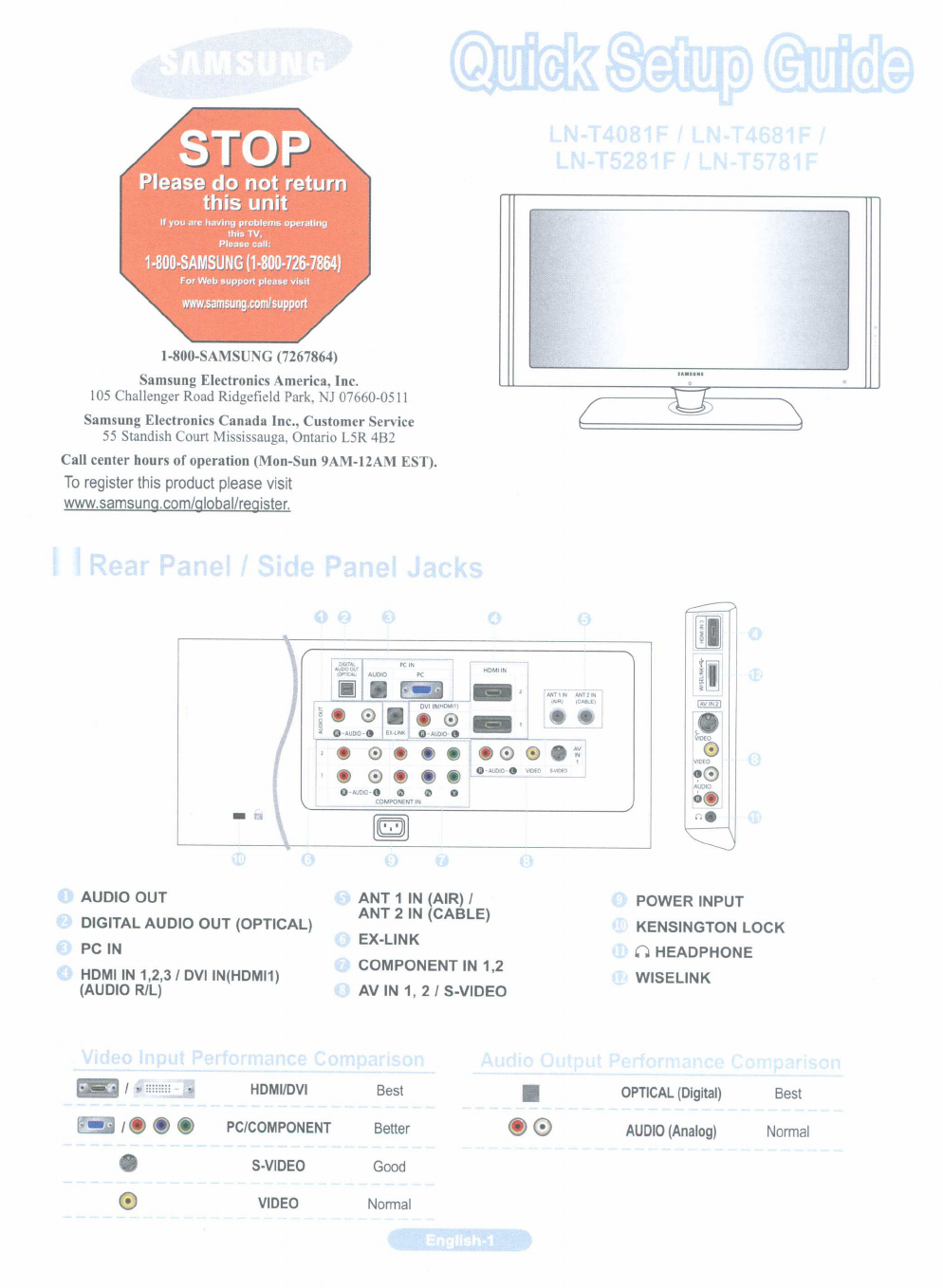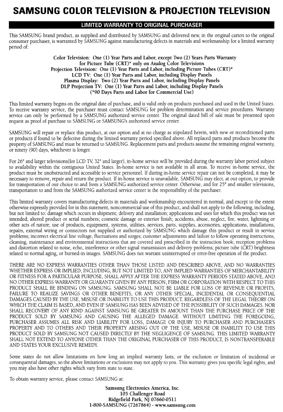 U.S.A 1-800-SAMSUNG (7267864) www.samsung.com