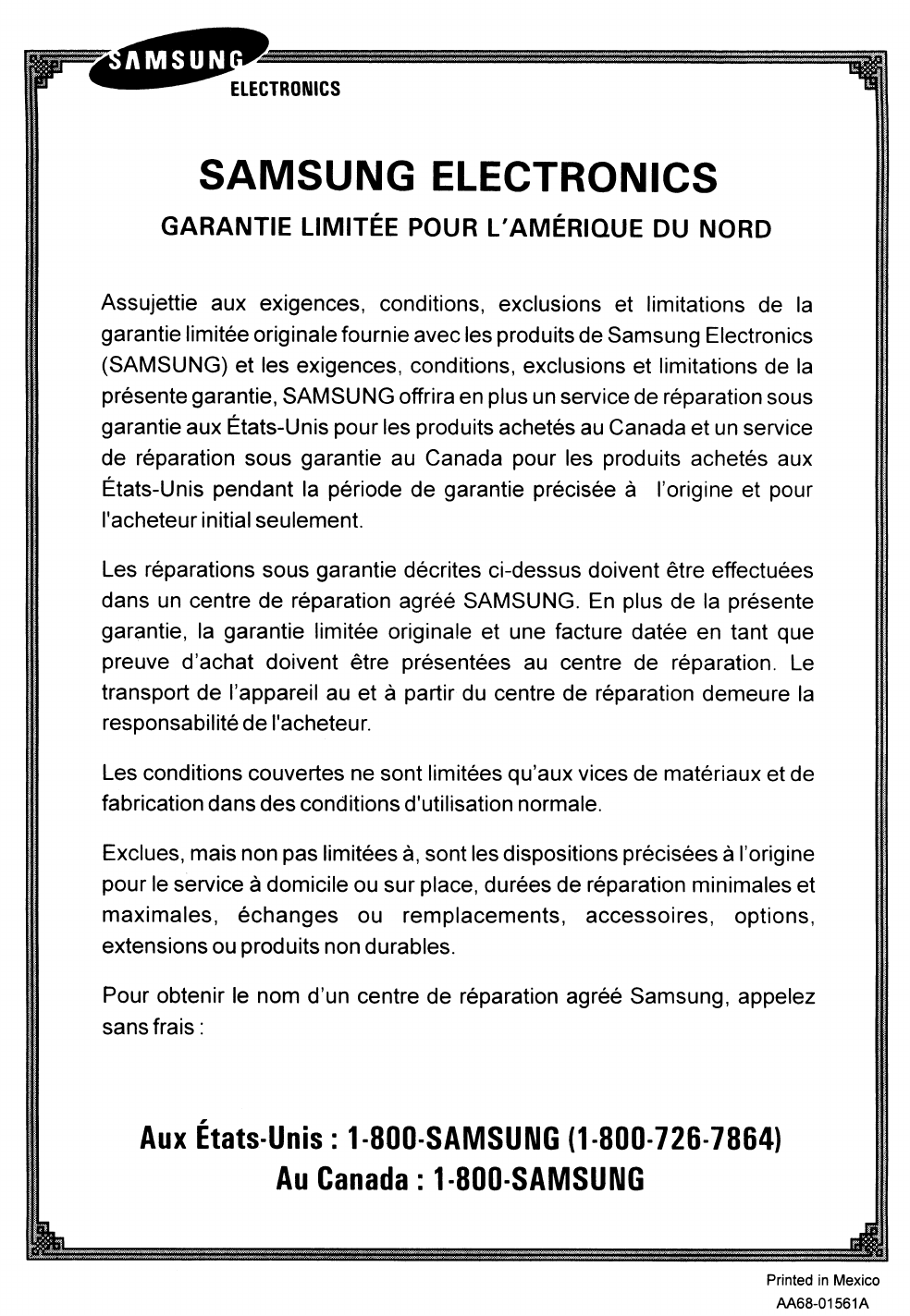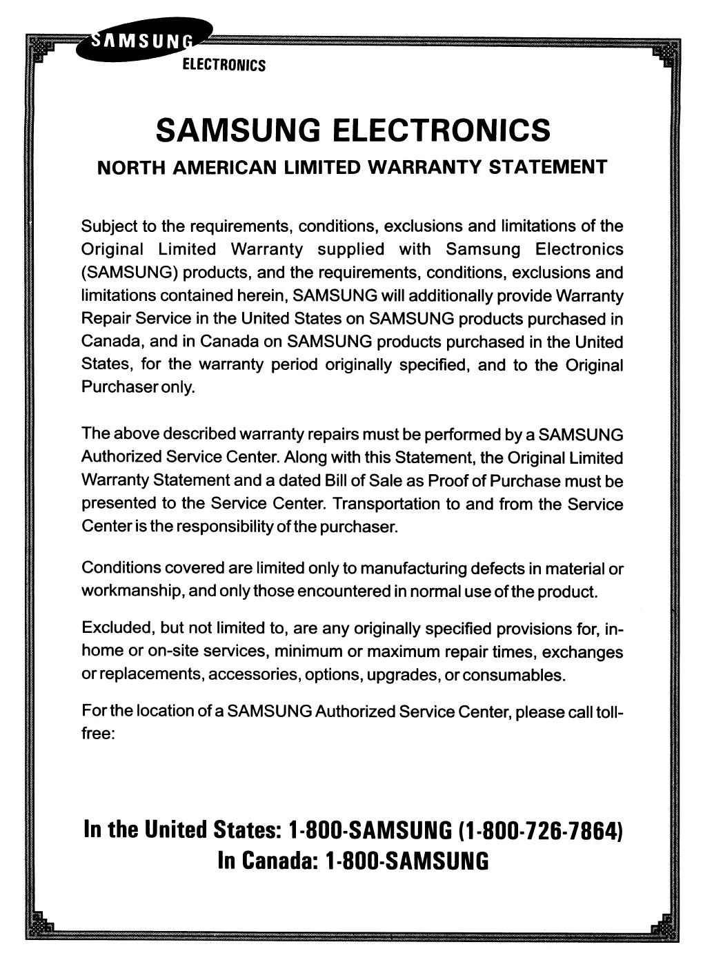 CANADA 1-800-SAMSUNG (7267864) www.samsung.com/ca