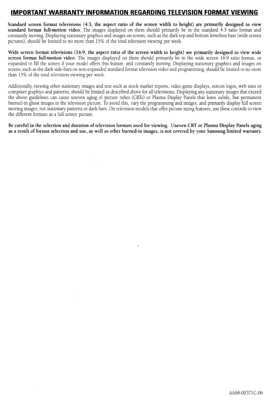 as well as burned-in images, are not covered by your Samsung limited warranty.