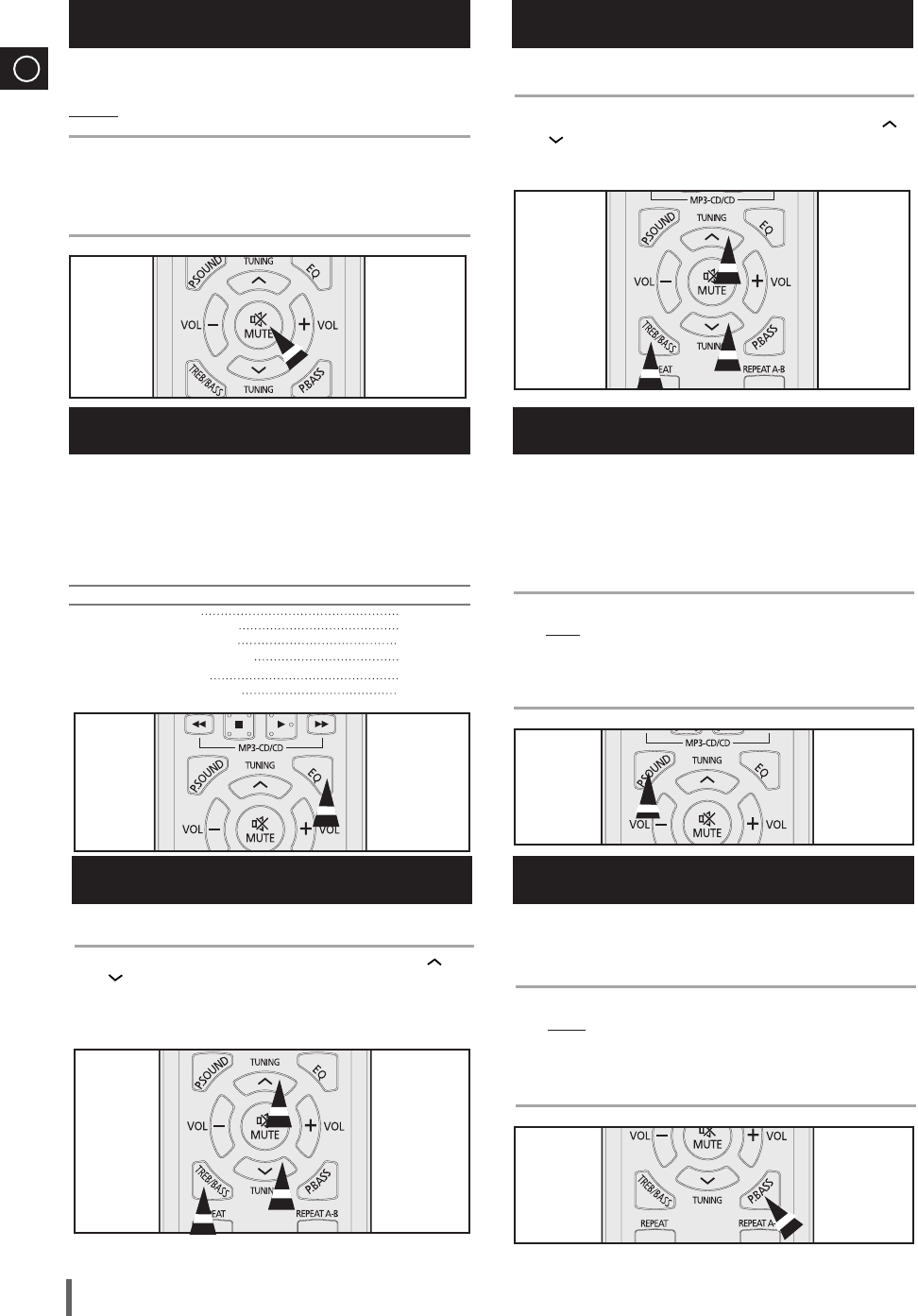 - Treble Level FunctionTreble Control function stresses high tones providing