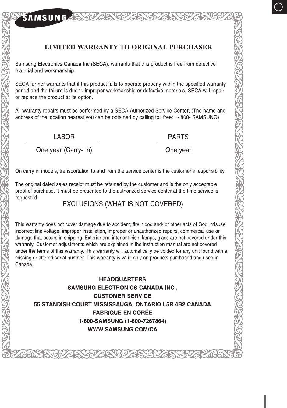 U.S.A 1-800-SAMSUNG (726-7864) www.samsung.com/us