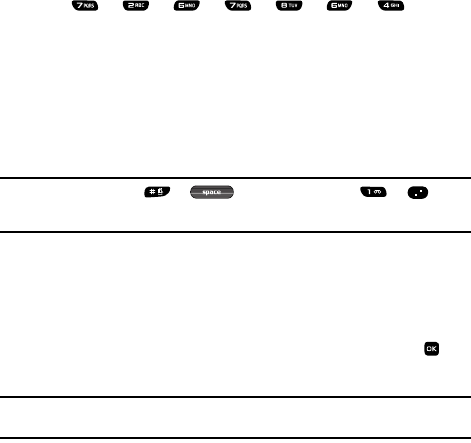 For example, to enter the word “Samsung”, press each of the following keys only