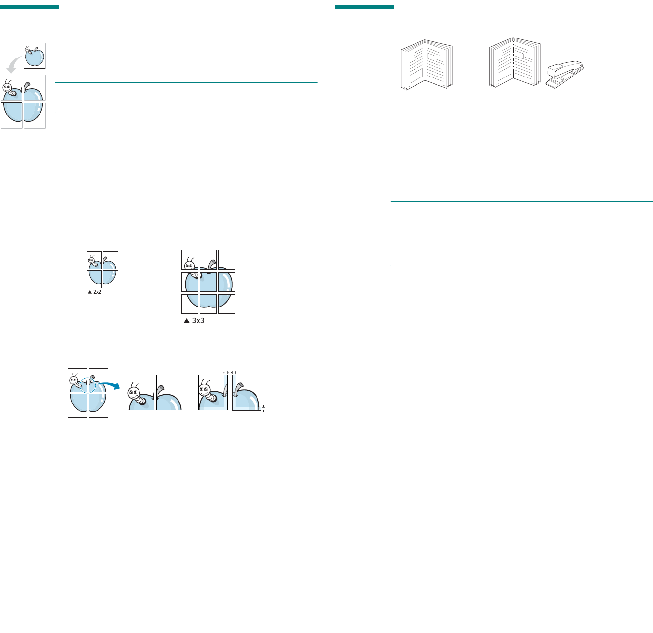 document are magnified and printed across the sheet of