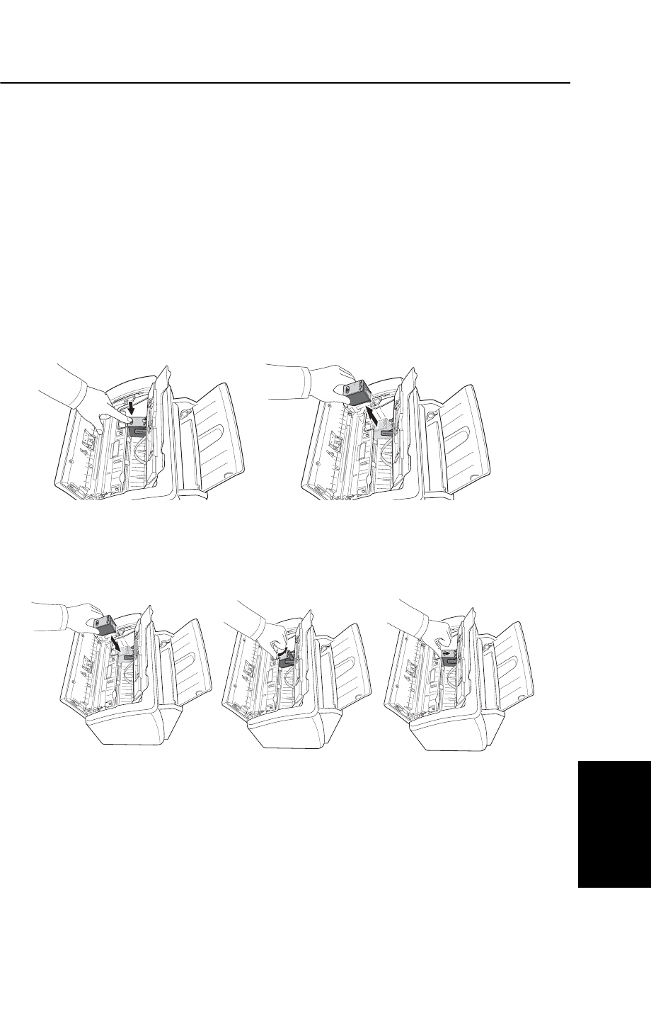 Never push objects of any kind into the fax machine through case or cabinet openings. They may touch