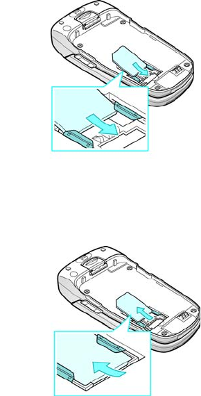 - 3. Slide the SIM card into the SIM card socket so that it locks the card into position. Make sure that the notched corner is top left and the gold contacts of the card face into the phone.