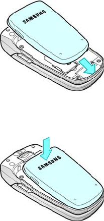 - 5. Press the battery down until it clicks into place. Make sure that the battery is properly installed before switiching on the power.