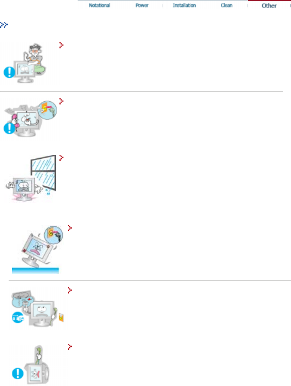 Be careful not to let water drip into the monitor or expose the monitor to