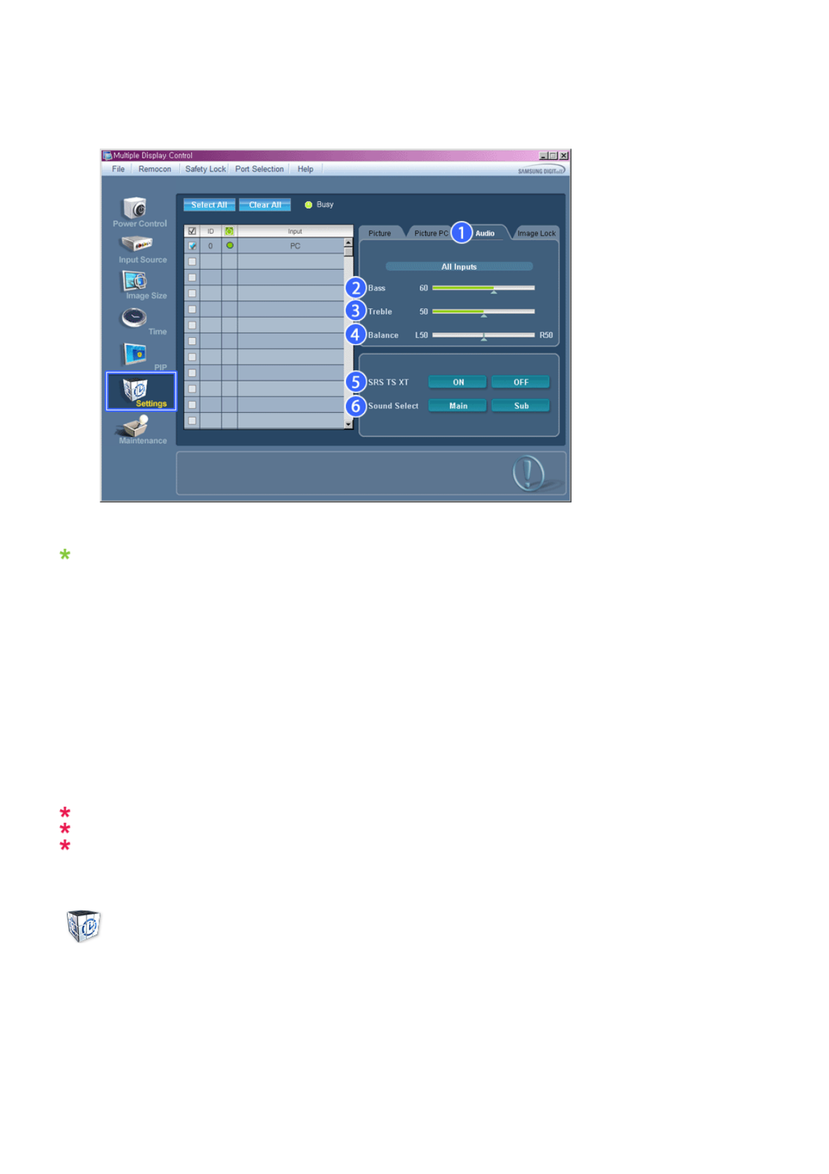 SRS TS XT This feature outputs sonorous and vivid 3D sound as for 5.1 chan-