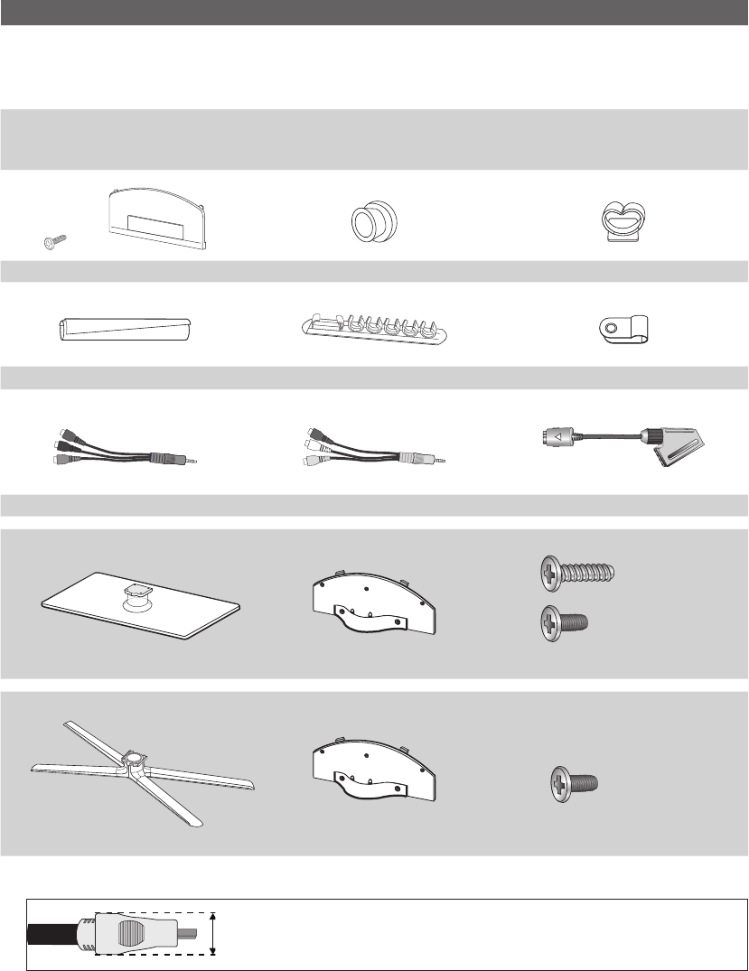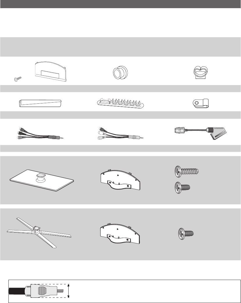 When using a stand or wall-mount, use parts provided by Samsung Electronics only.