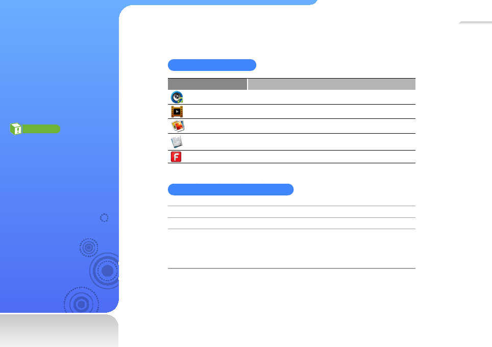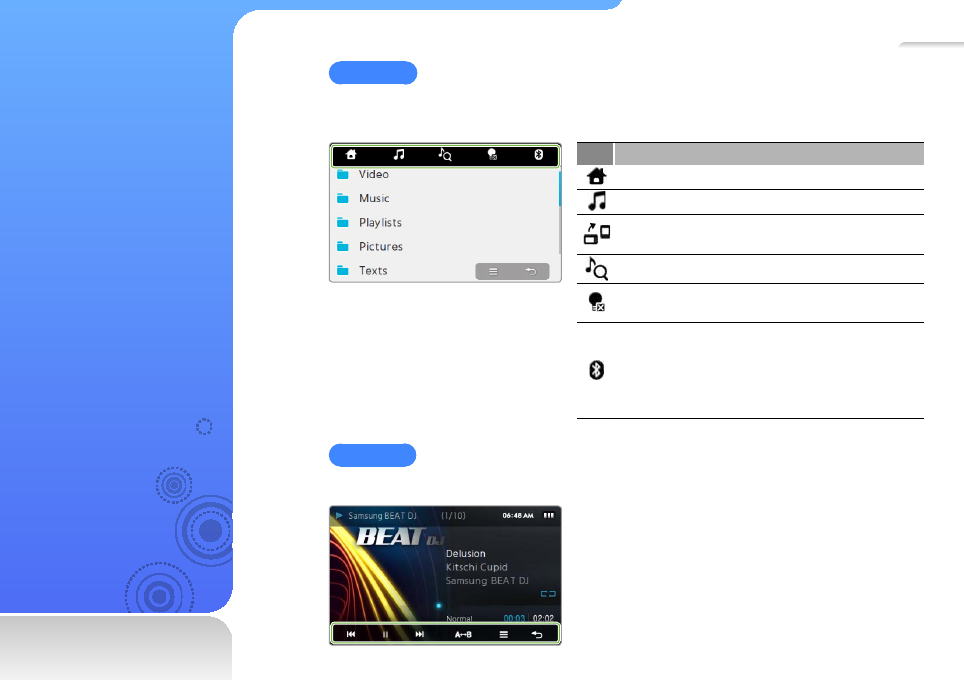 To view the special features of your MP3 player, see •