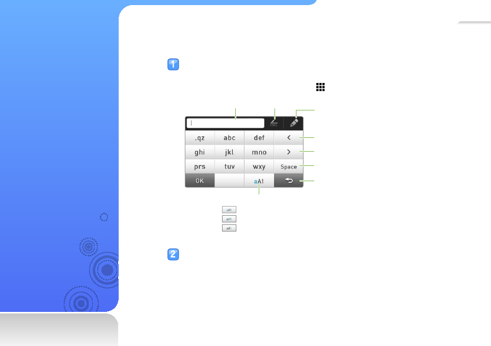 < > Menu names or text on the screen ;