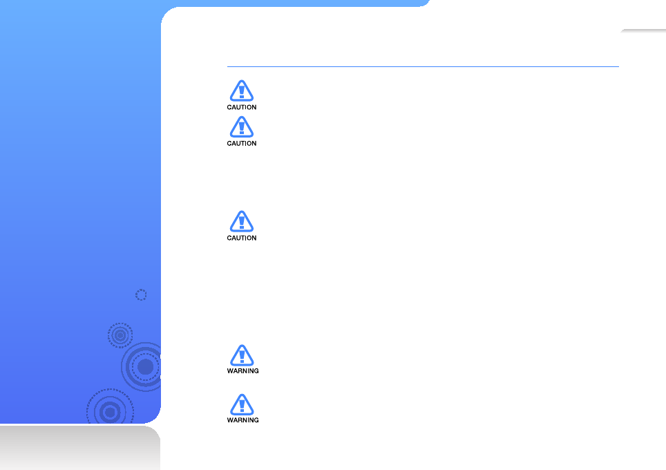 For your safety, make sure the earphone cable does not get in the way of your •