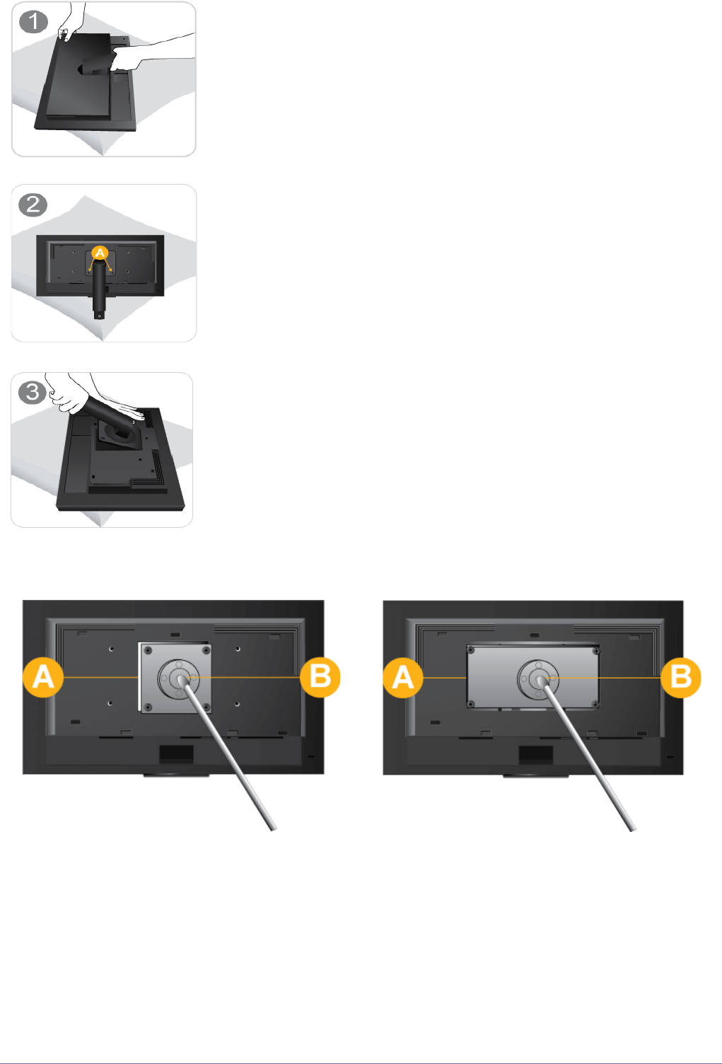 •Do not use screws that are incompatible with the standard VESA specifications and do not assemble them using excessive