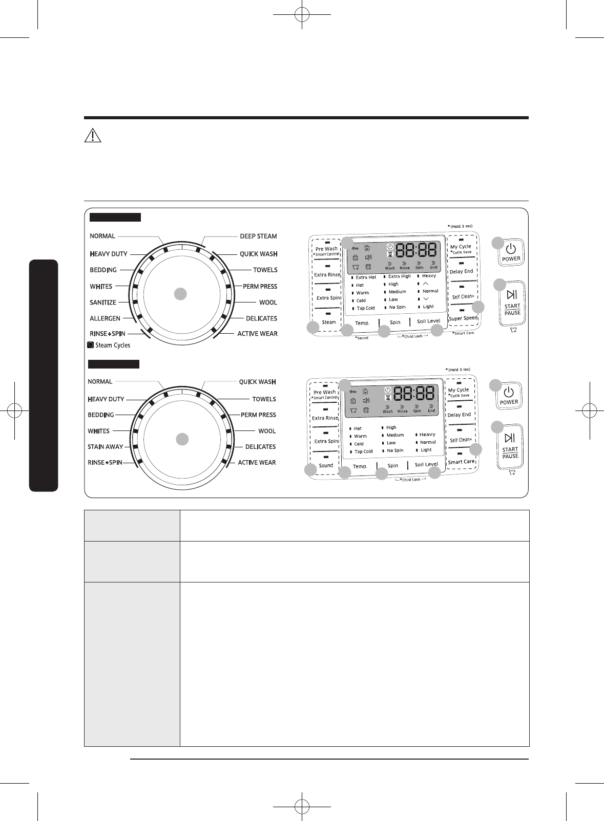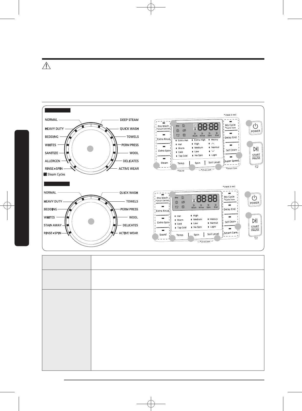 your washer may differ slightly from those described in this manual and not all warning