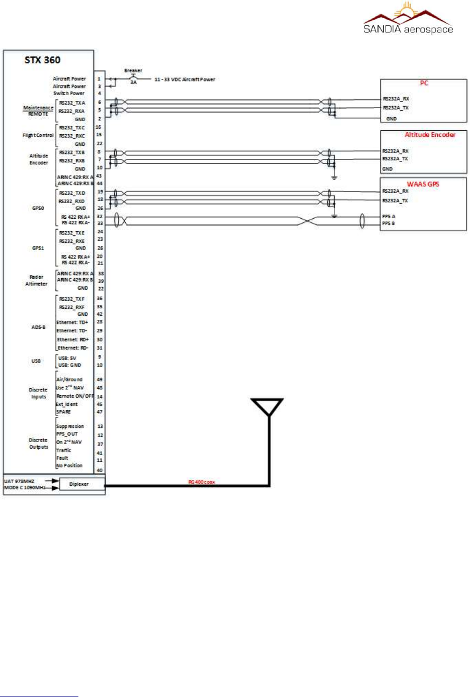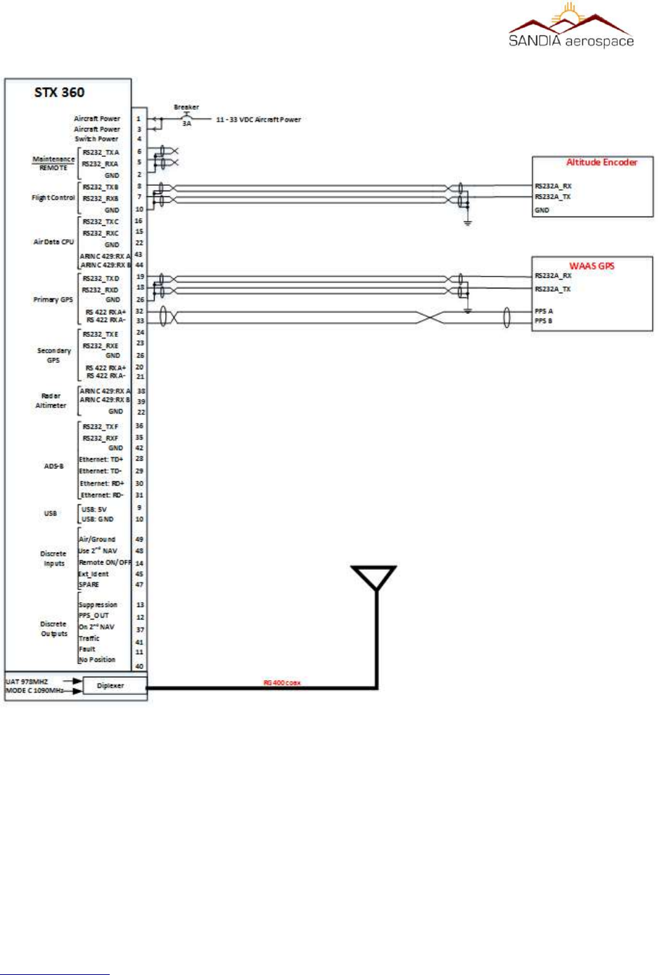 Sandia Aerospace Corporation AVIATION TRANSPONDER STX360 032417 5ER