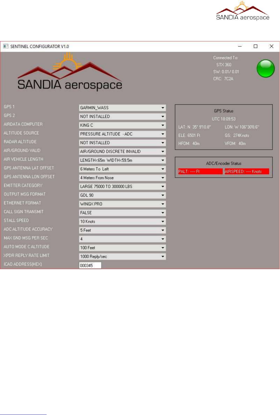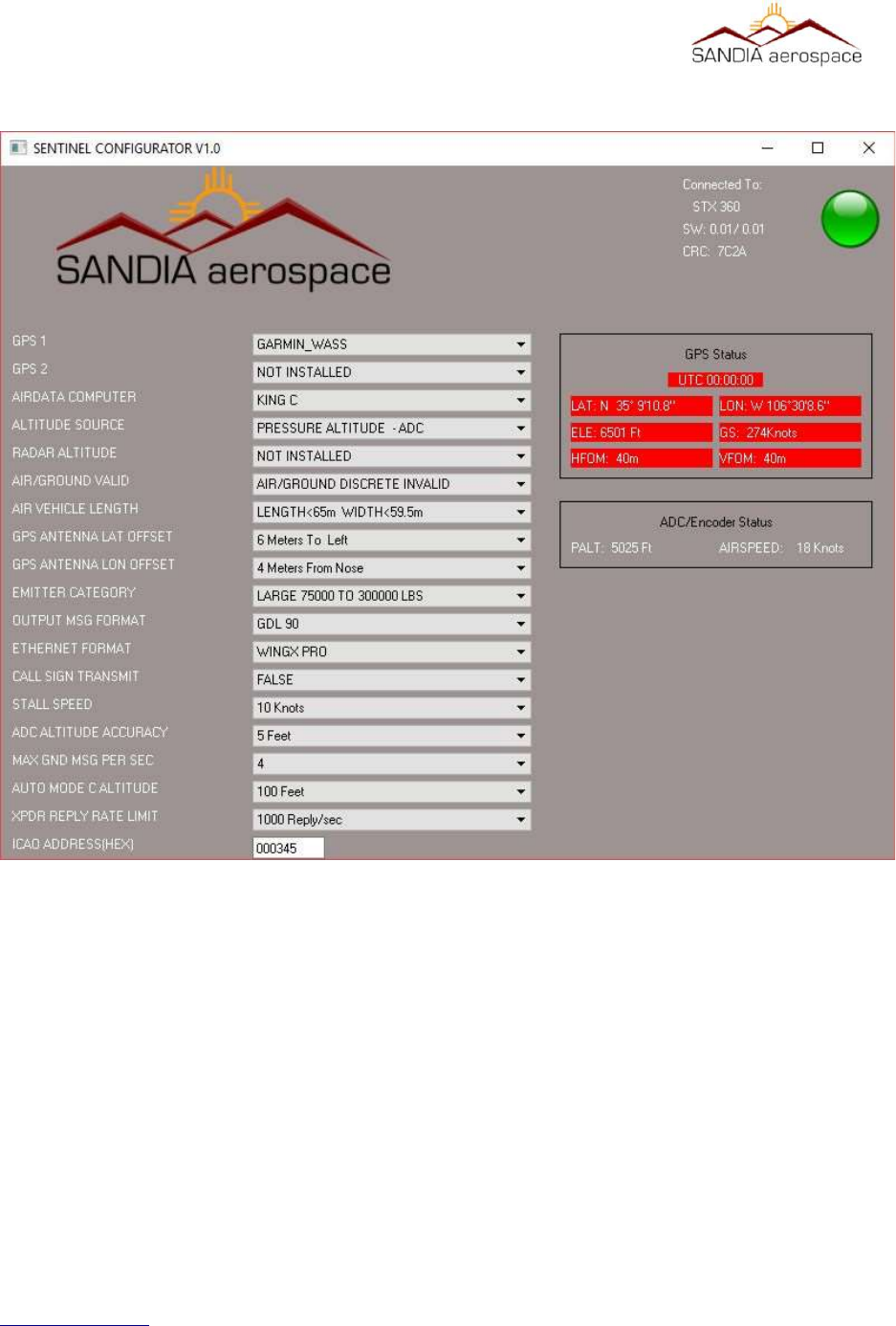 Appendix A – Sandia Aerospace STX360 configuraon applicaon