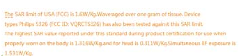 use when properly worn on the body is 1.316 W/kg and for head is 0.311 W/kg.