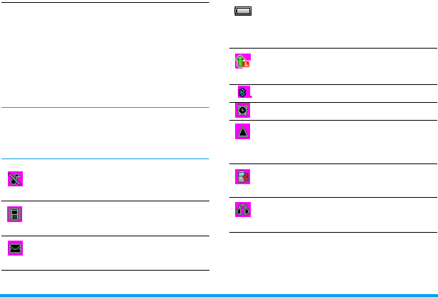 table below summarizes the functional icons on
