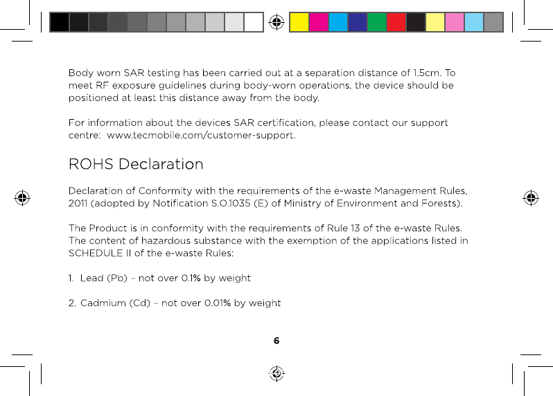 distance of 1.0 cm must be maintained between the user’s body and the handset, including the antenna. Third-party belt-clips,
