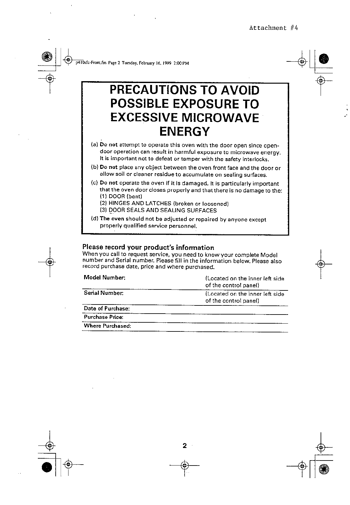 Sanyo Electric Co M218 Microwave Oven User Manual M218 Attach 4