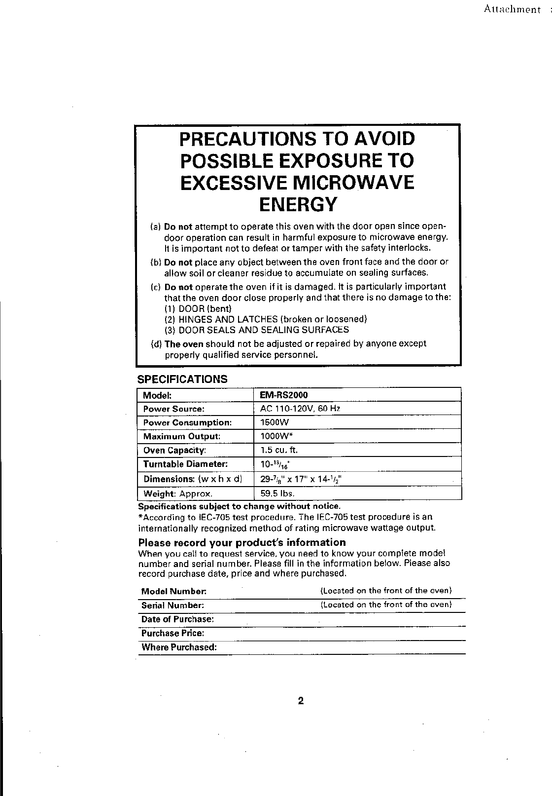 Sanyo Electric Co M902 Microwave Oven User Manual M902 Attach 4