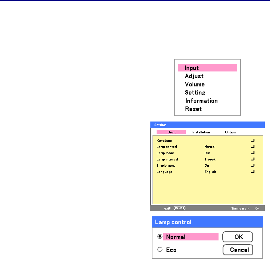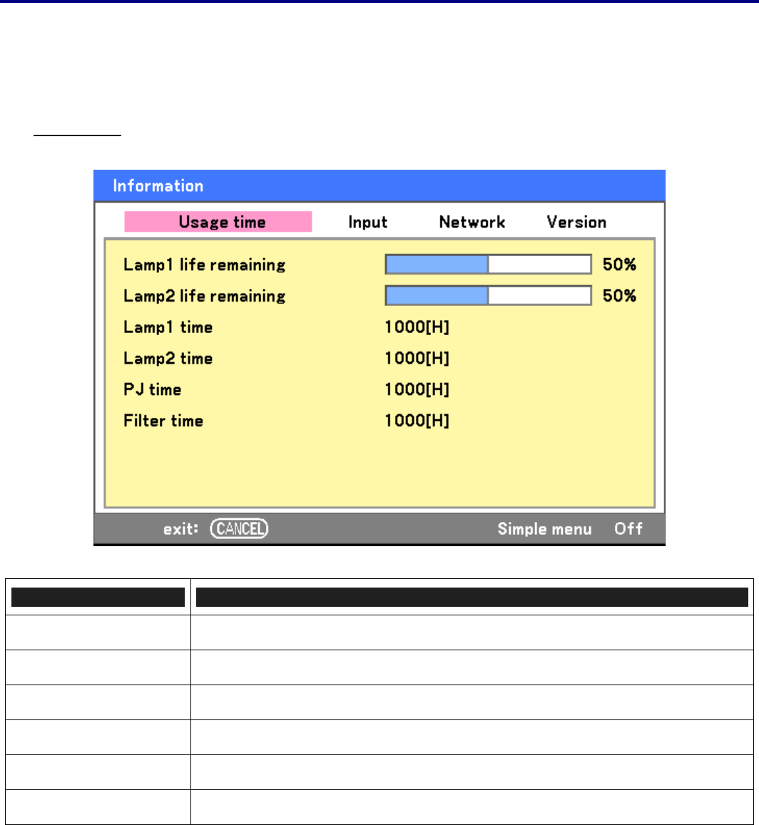 Lamp operating time (hours): Lamp Mode: Normal Eco