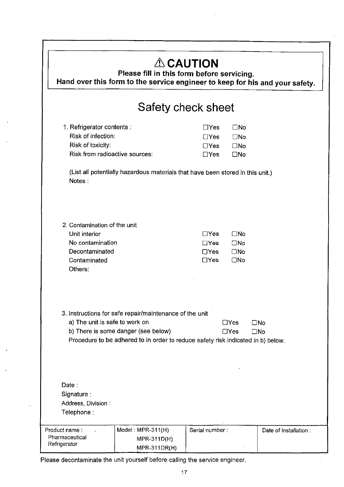Sanyo Refrigerator Mpr 311Dh Users Manual