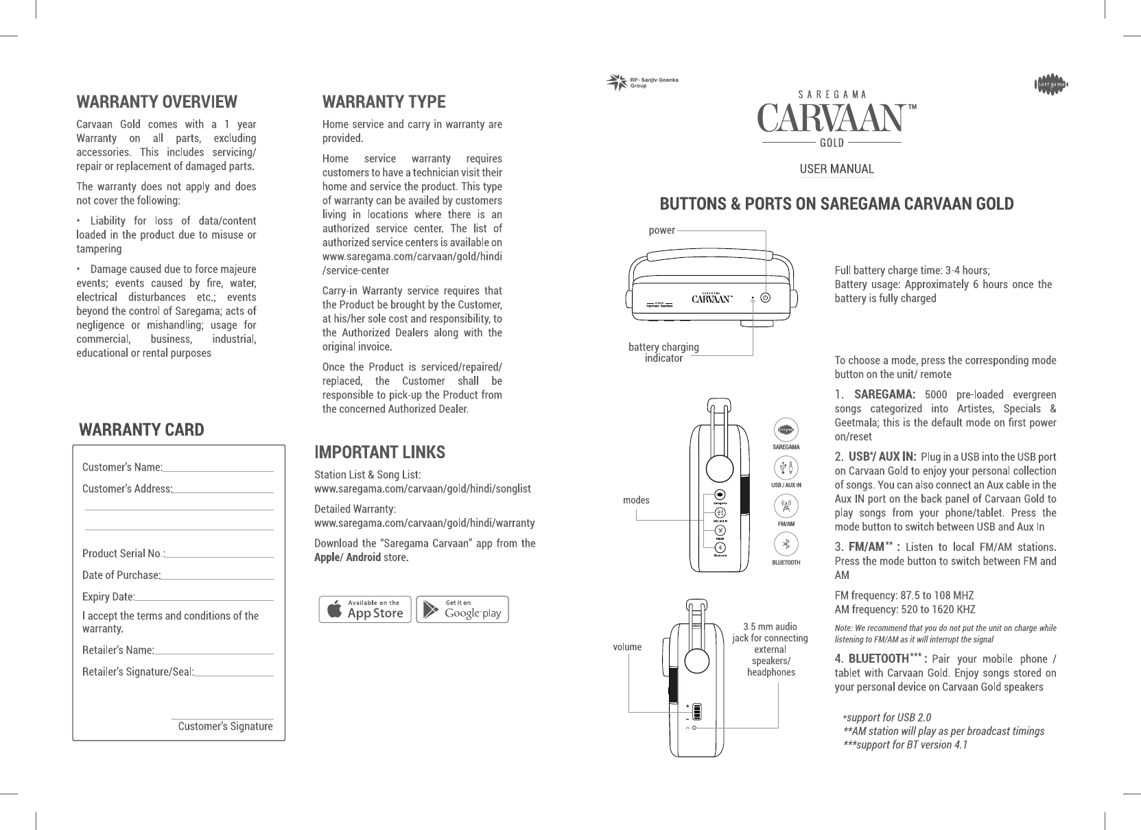 Saregama SC130 Carvaan Gold User Manual Gold ctc