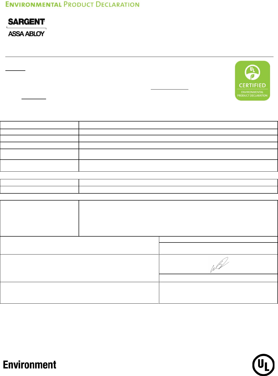 Environmental Product Declaration SARGENT Manufacturing – IN120 WiFi Electronic Access Control Mortise Lock