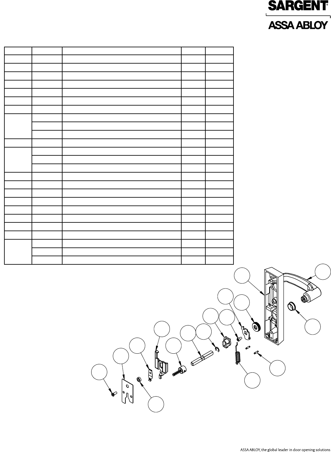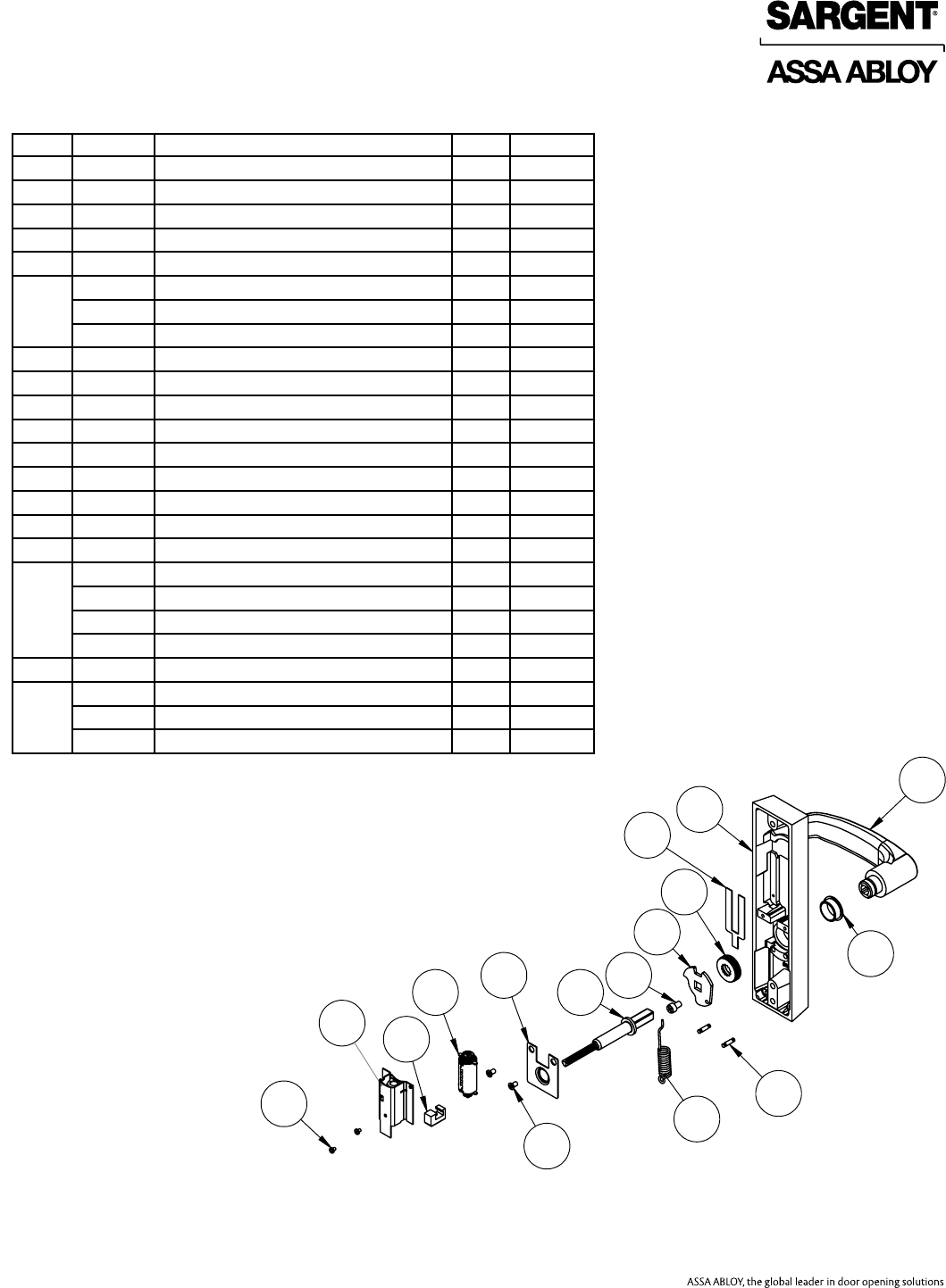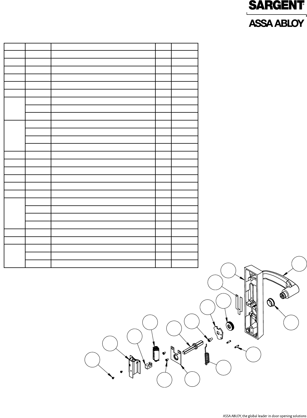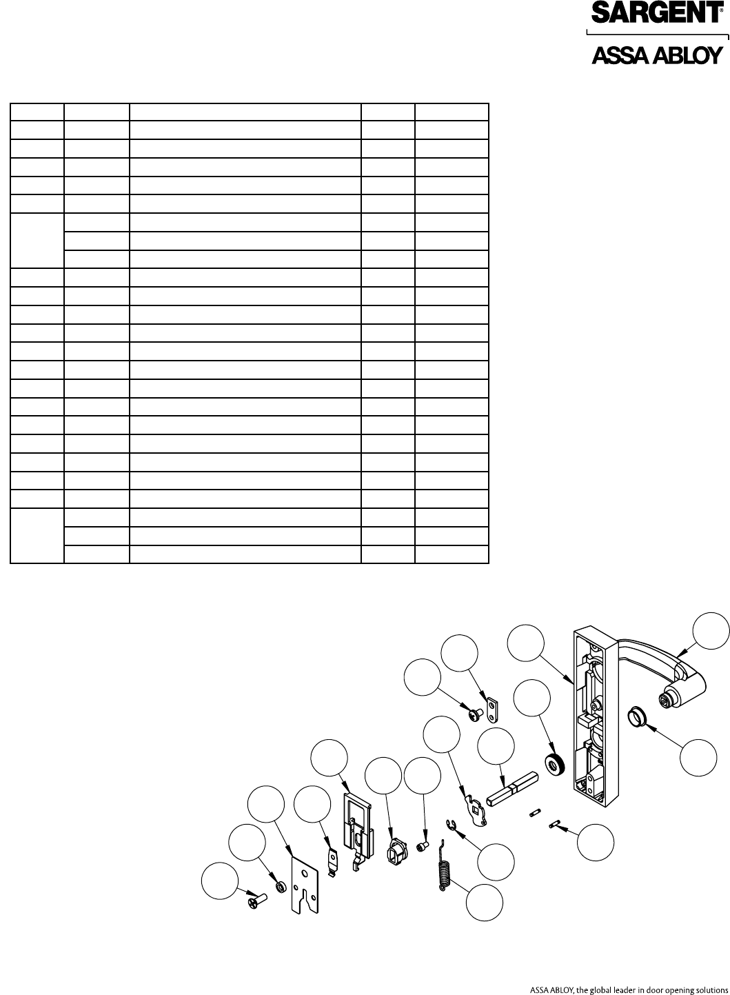 User Manual: Sargent 80 Series Parts Manual Parts List