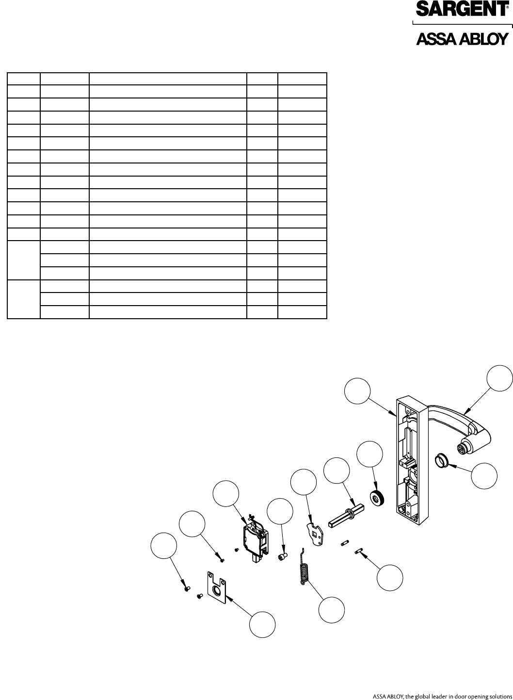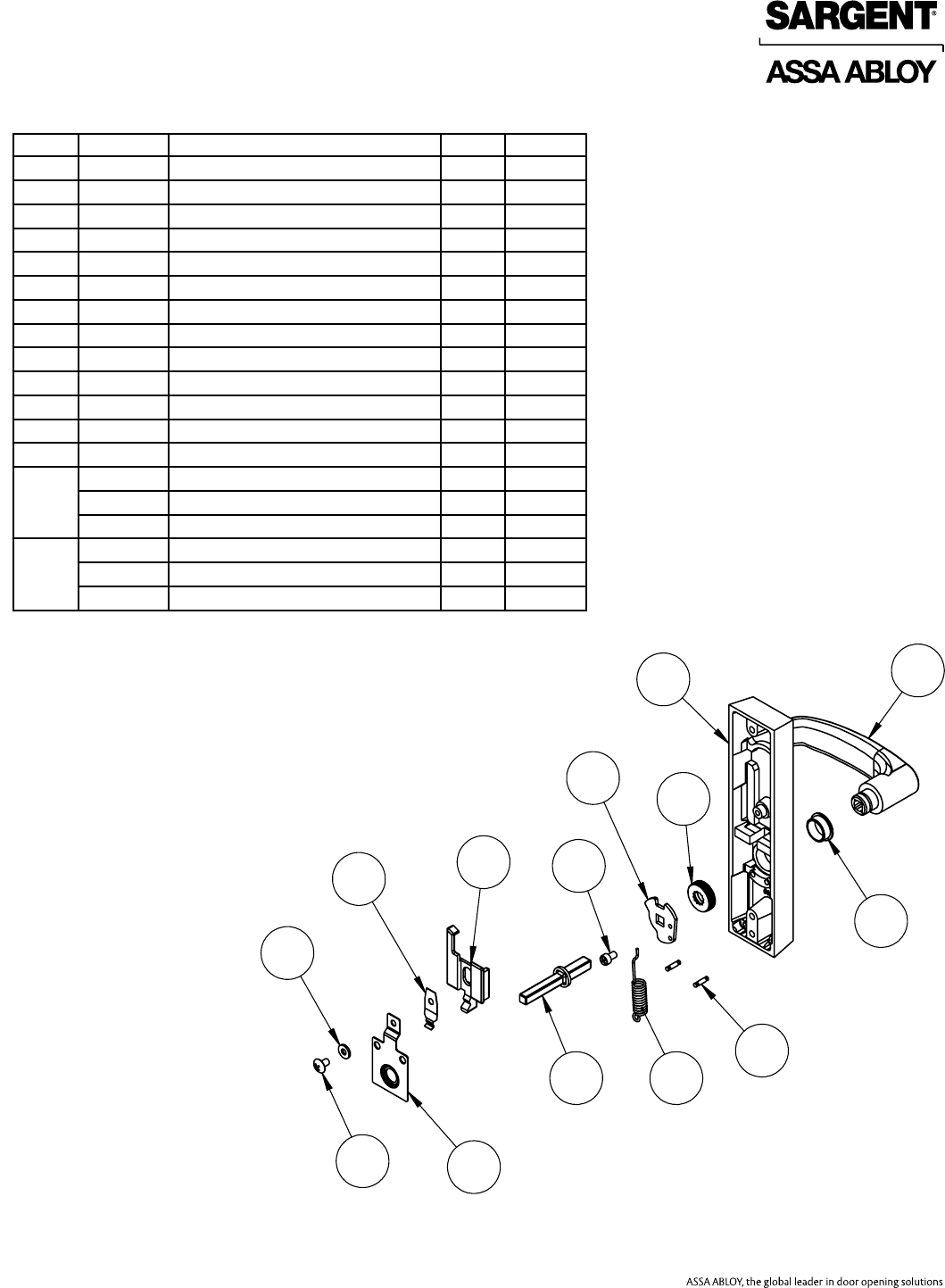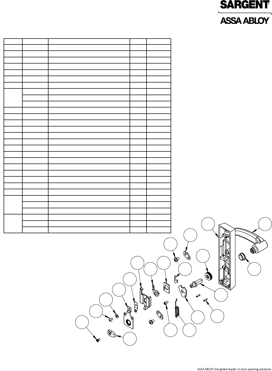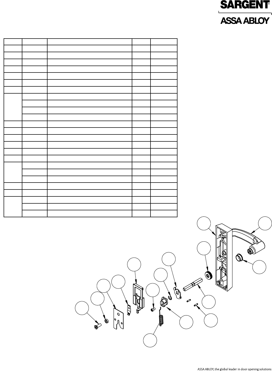 User Manual: Sargent 80 Series Parts Manual Parts List