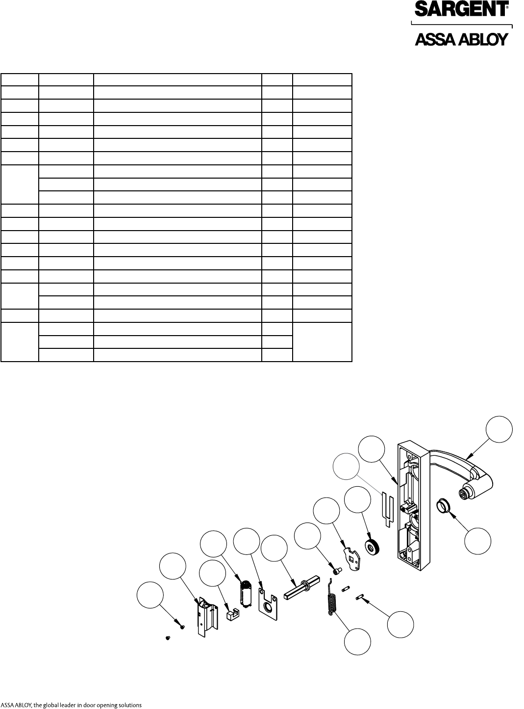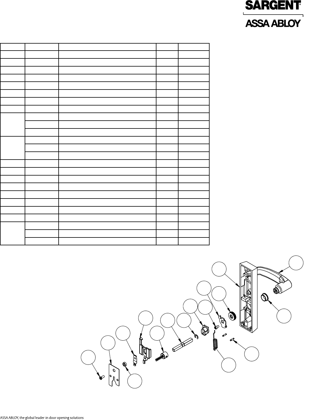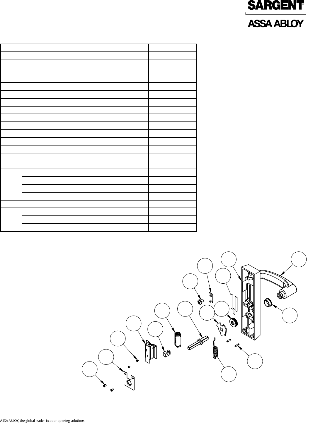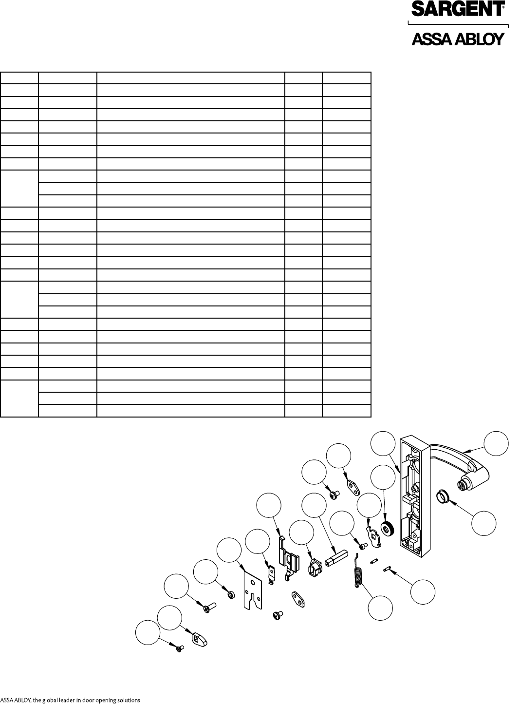 User Manual: Sargent 80 Series Parts Manual Parts List