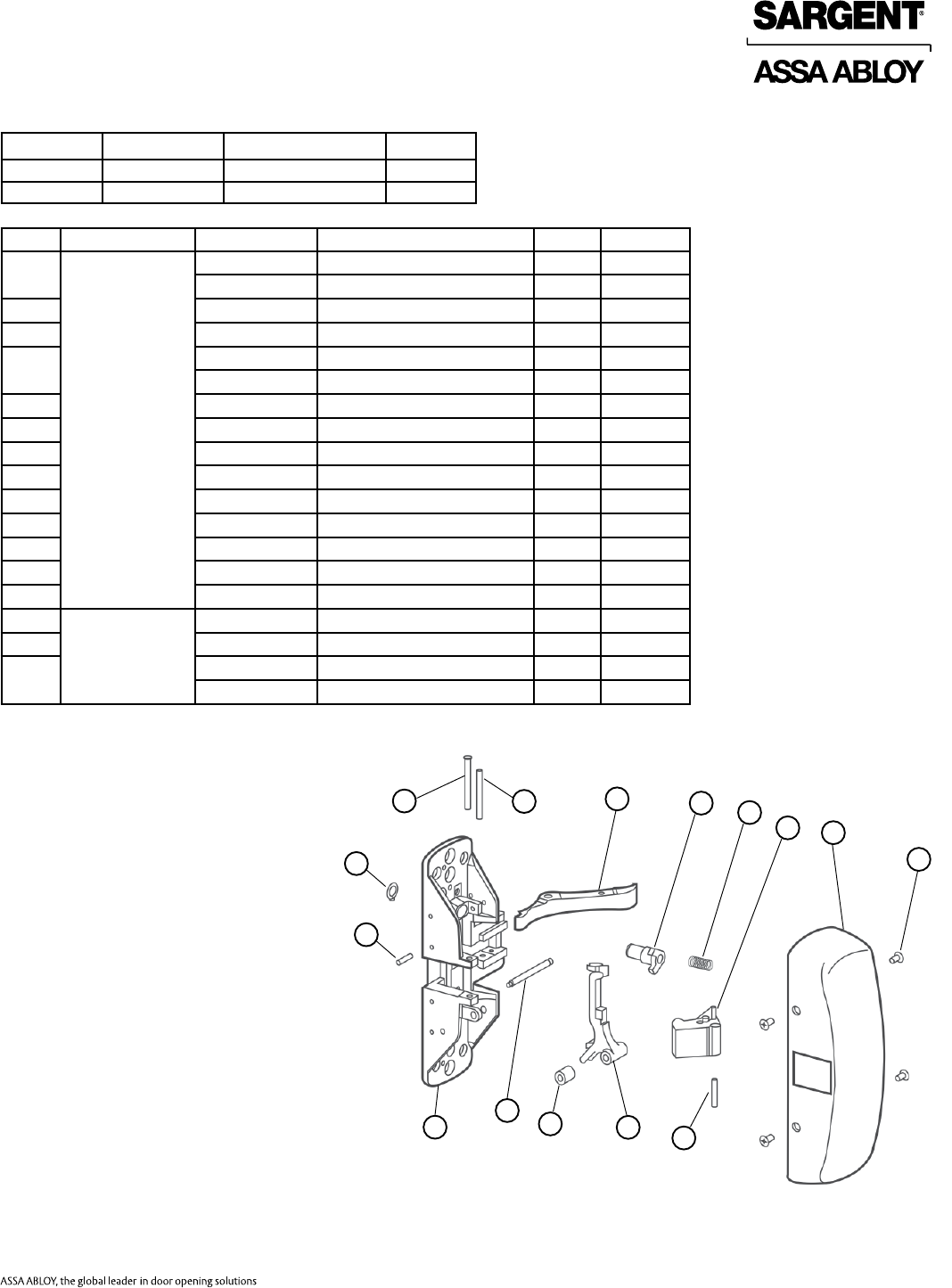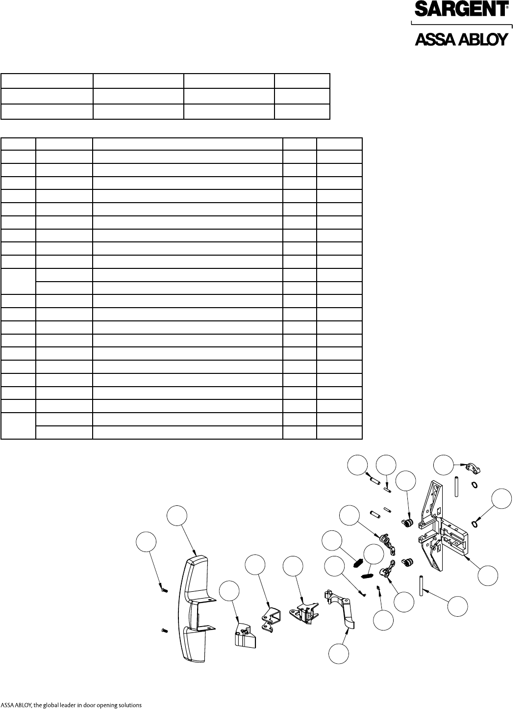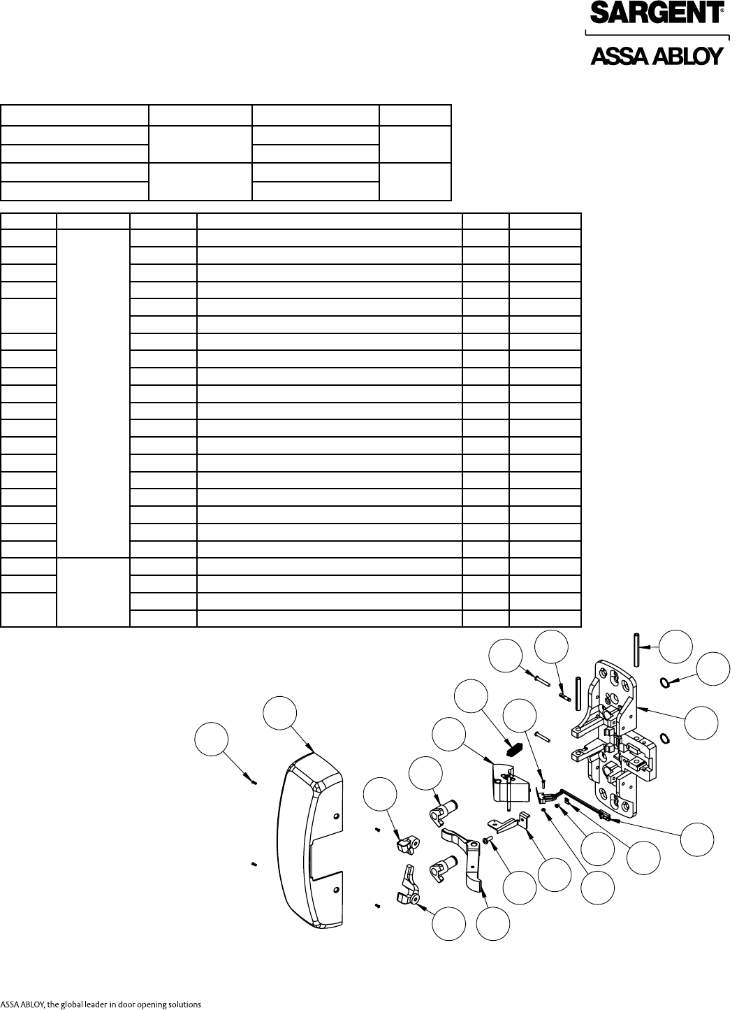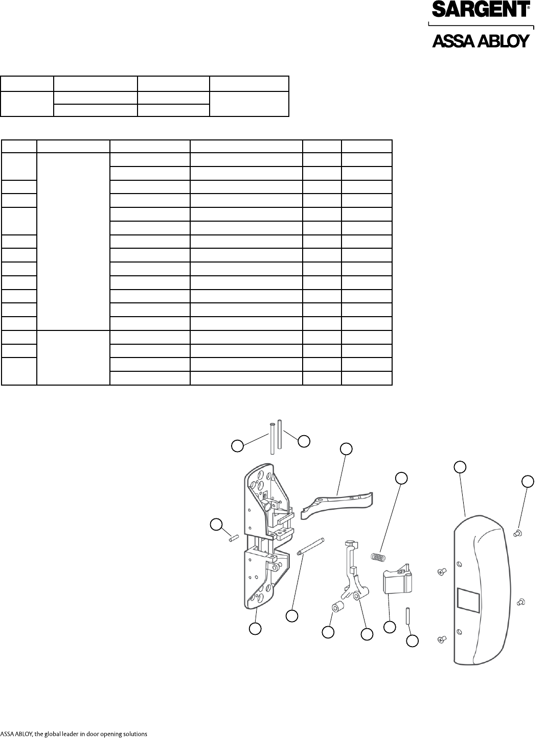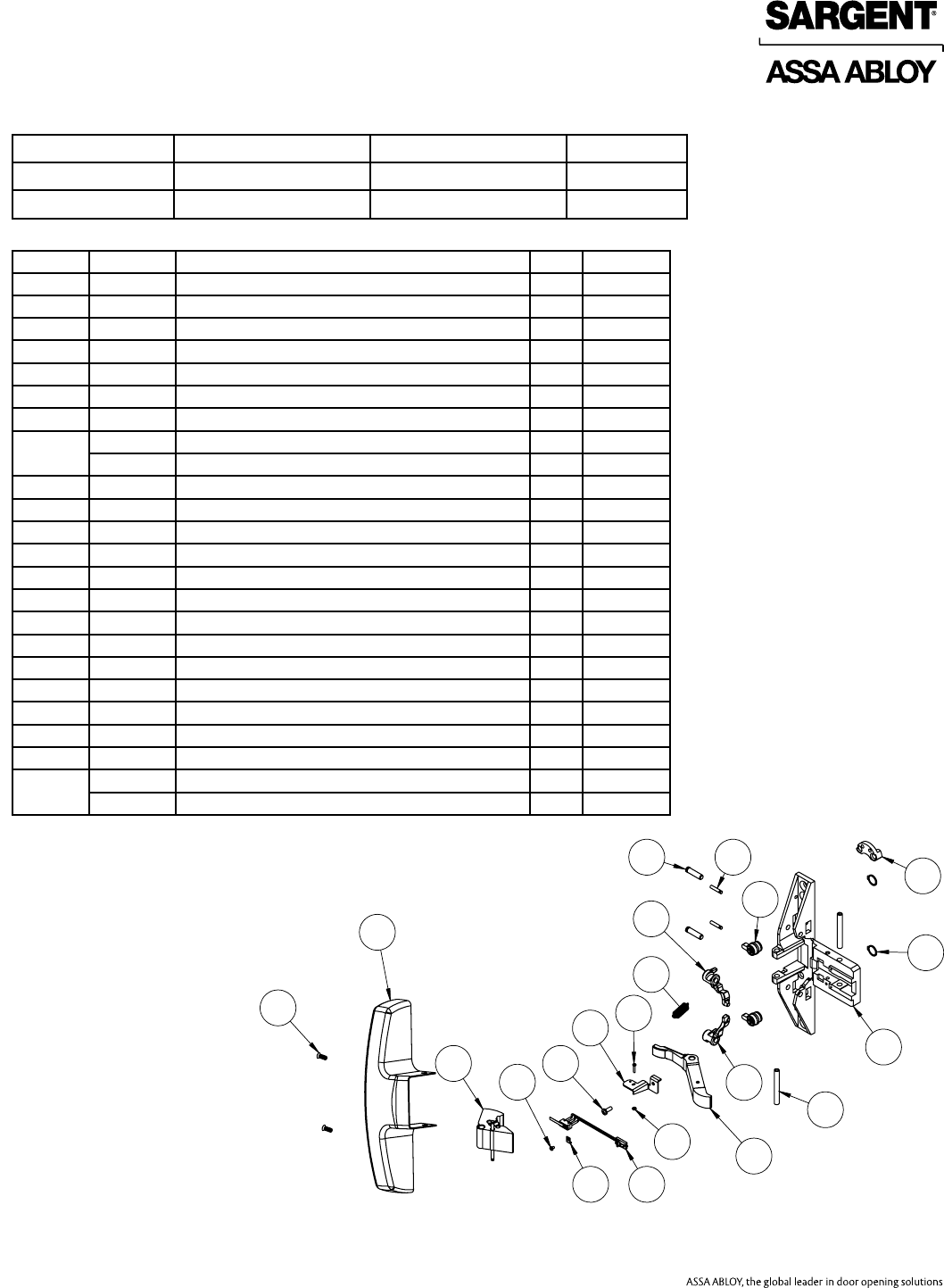 Sargent 80 Series Parts Manual 80Series Exit Device