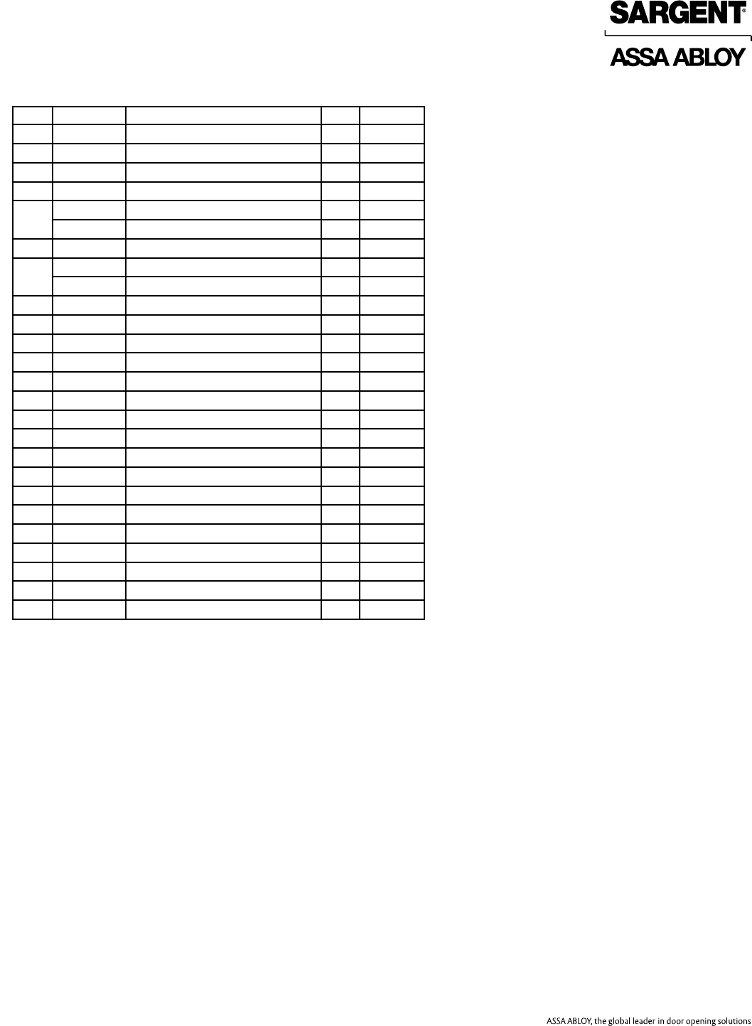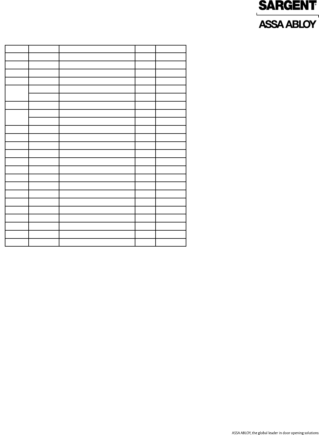 Copyright © 2017, Sargent Manufacturing Company, an ASSA ABLOY Group company. All rights reserved. Reproduction in whole or in part without the express