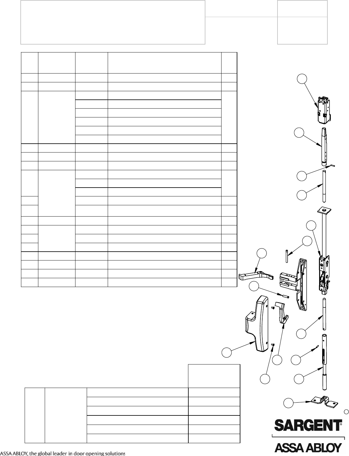 Sargent 8400 12 PARTS LIST MD8400 Concealed Vertical Rod Series Center Chassis Assembly 84.2