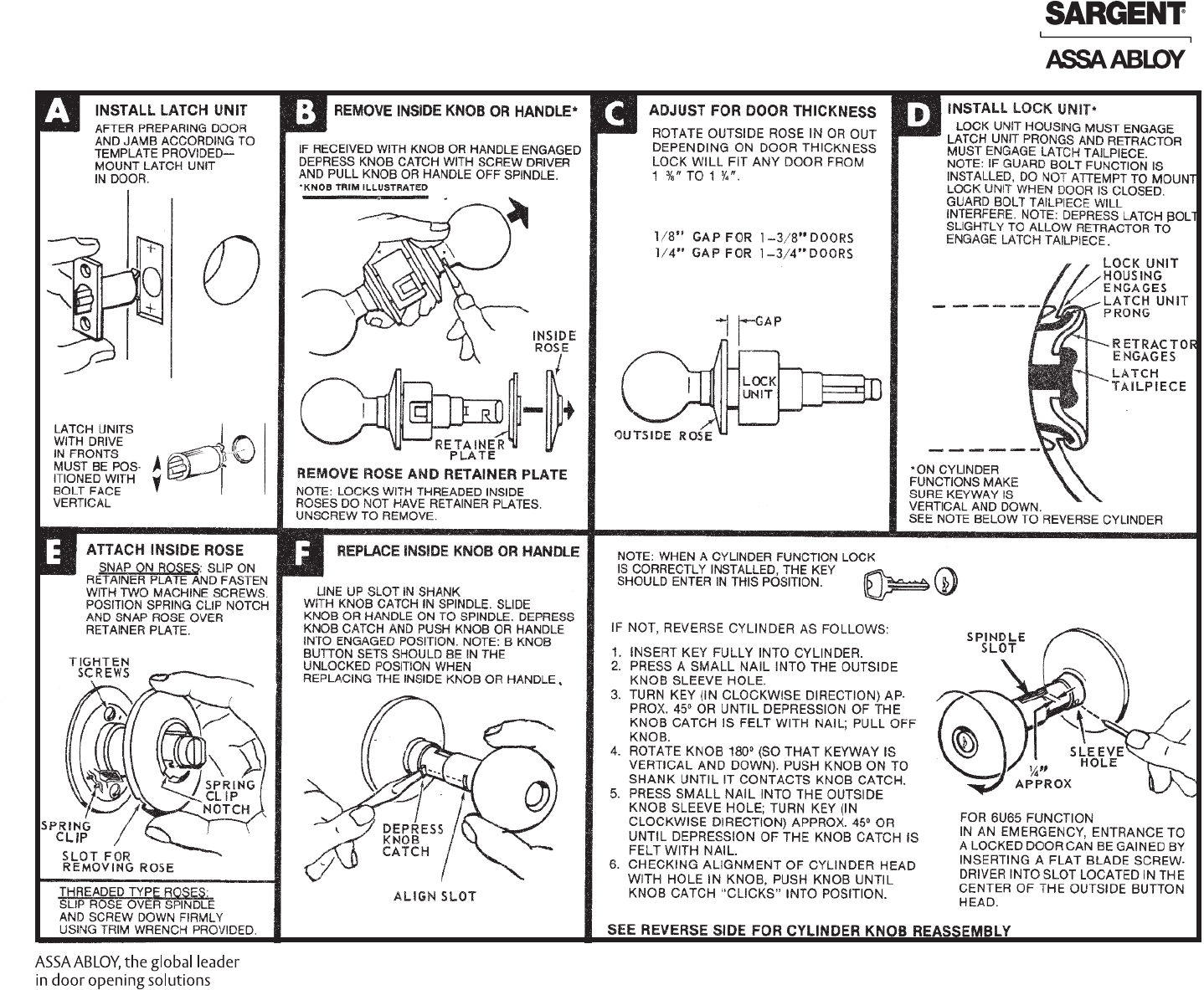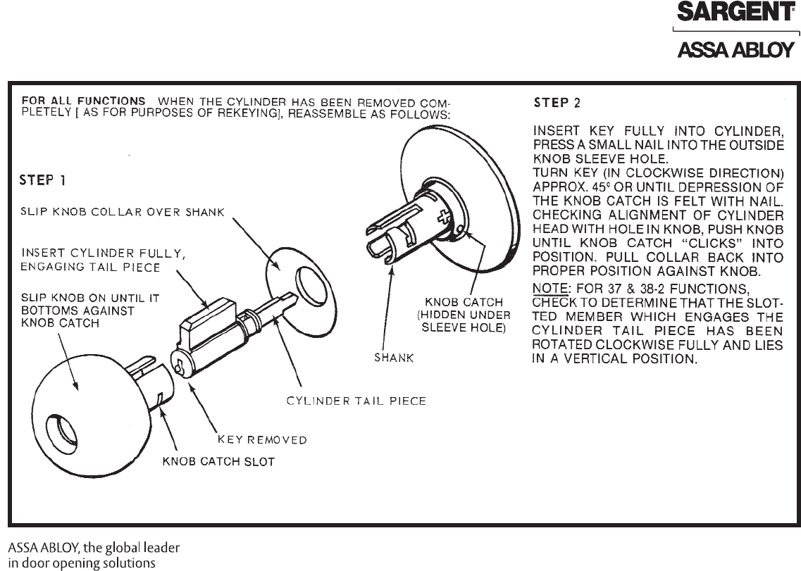 Sargent Instructions For Installing 6 Line Bored Lock/Cylinder Reassembly A6286L