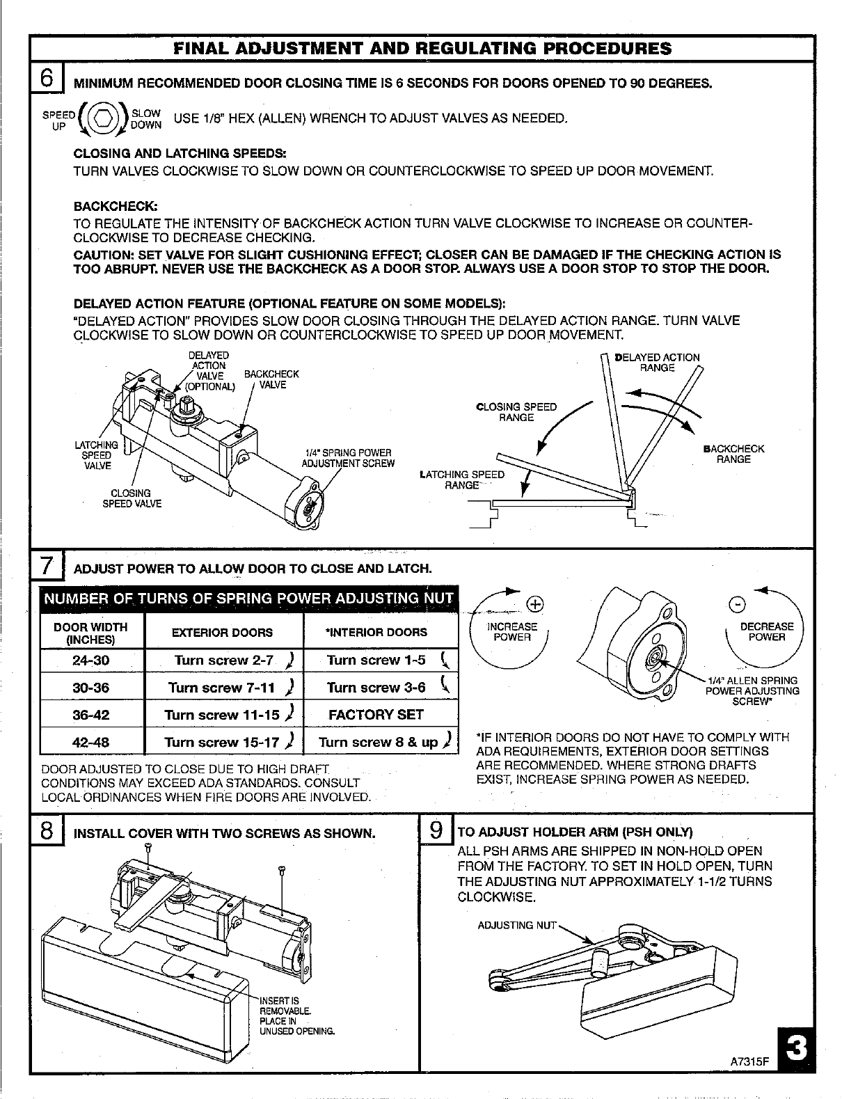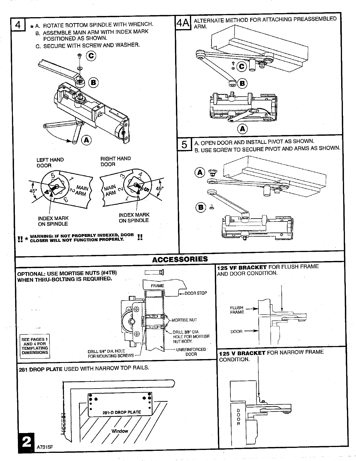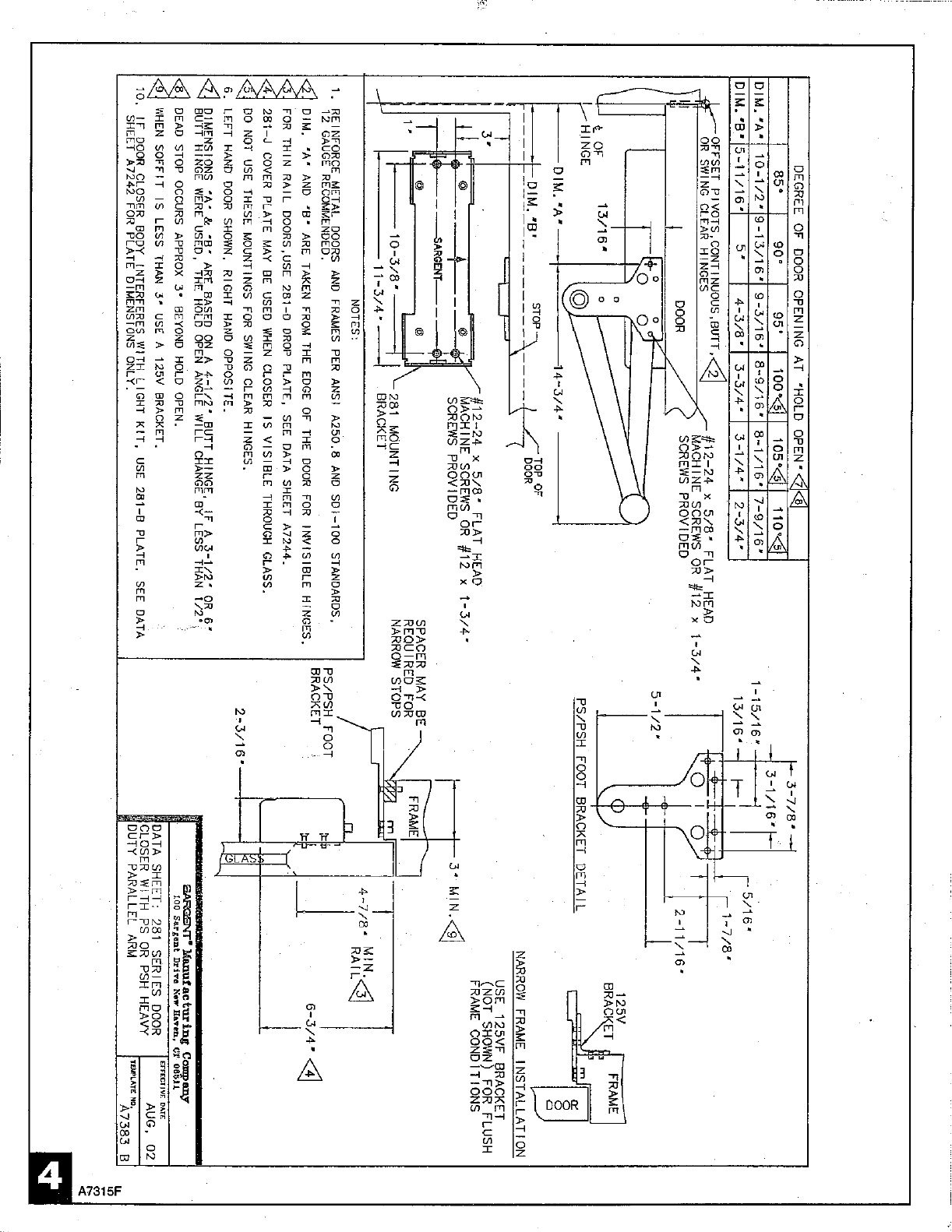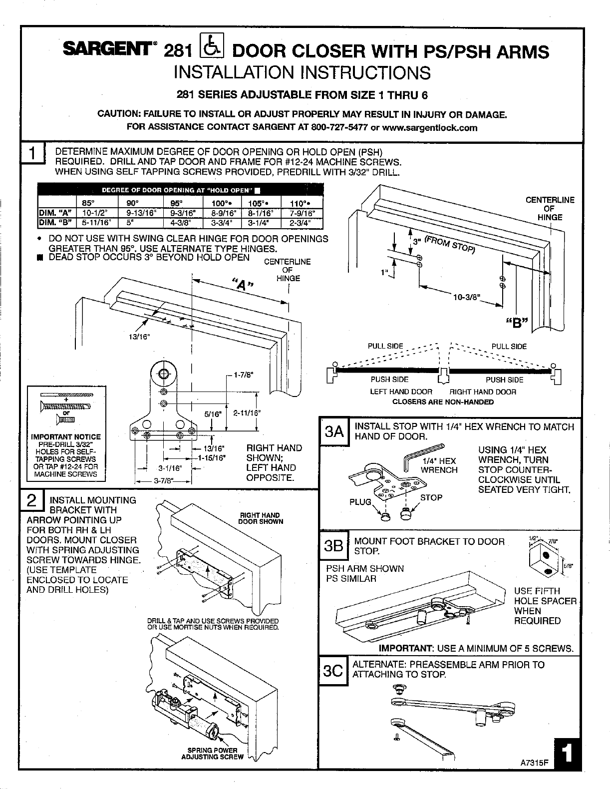 Sargent Print A7315 F.tif (4 Pages) Instructions For Installation Of 281 Series Door Closers W/PS & PSH Arms A7315F