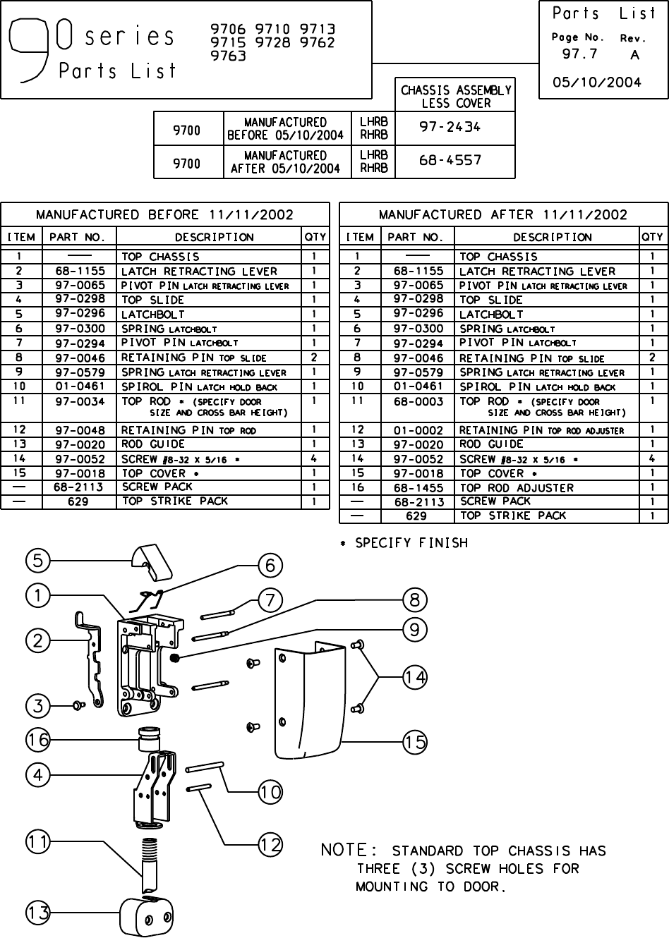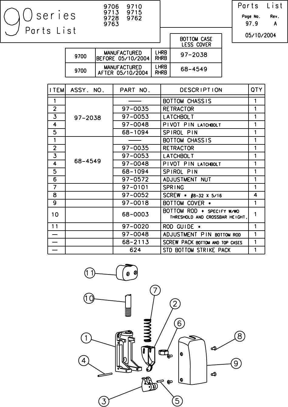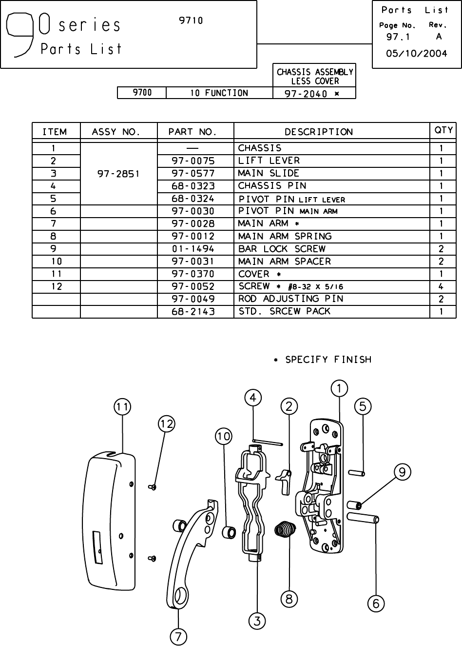 Sargent 90 Series Exit Device Parts List