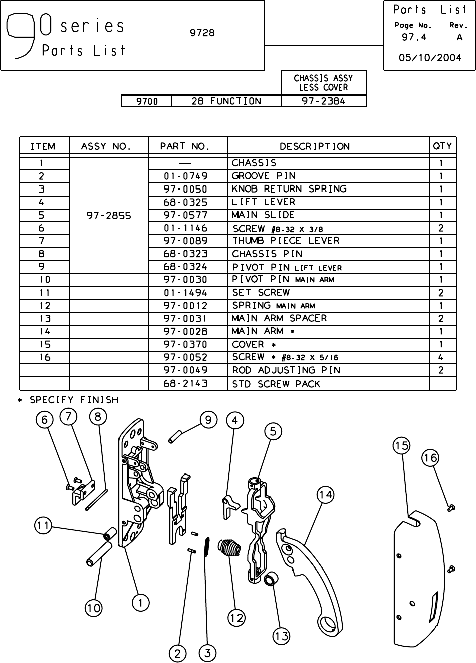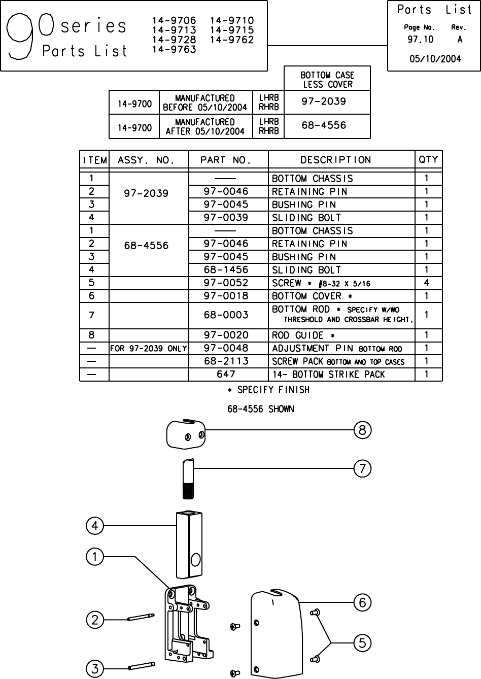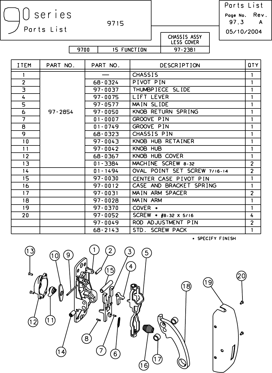 Sargent 90 Series Exit Device Parts List