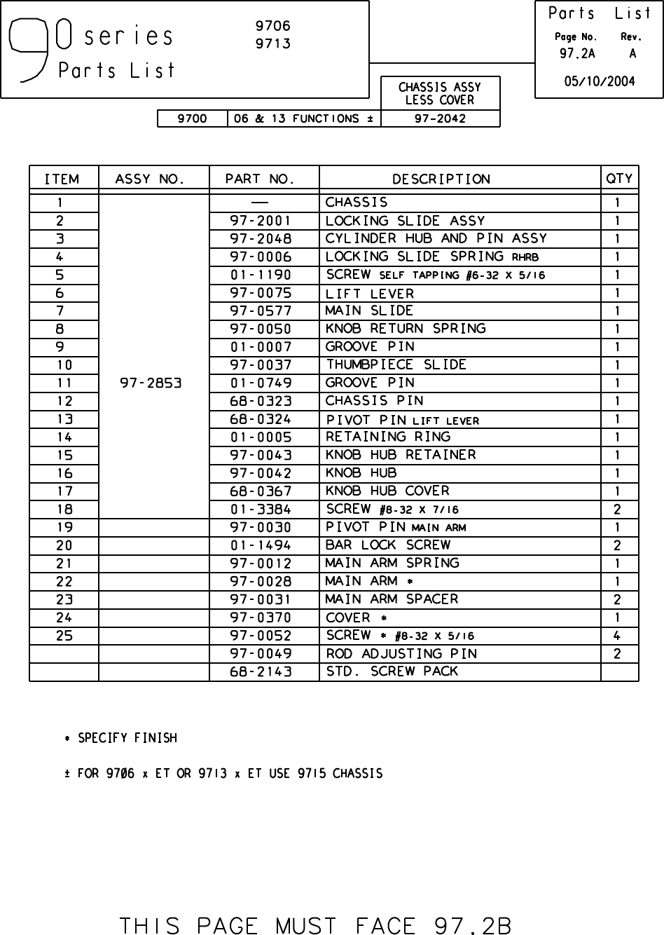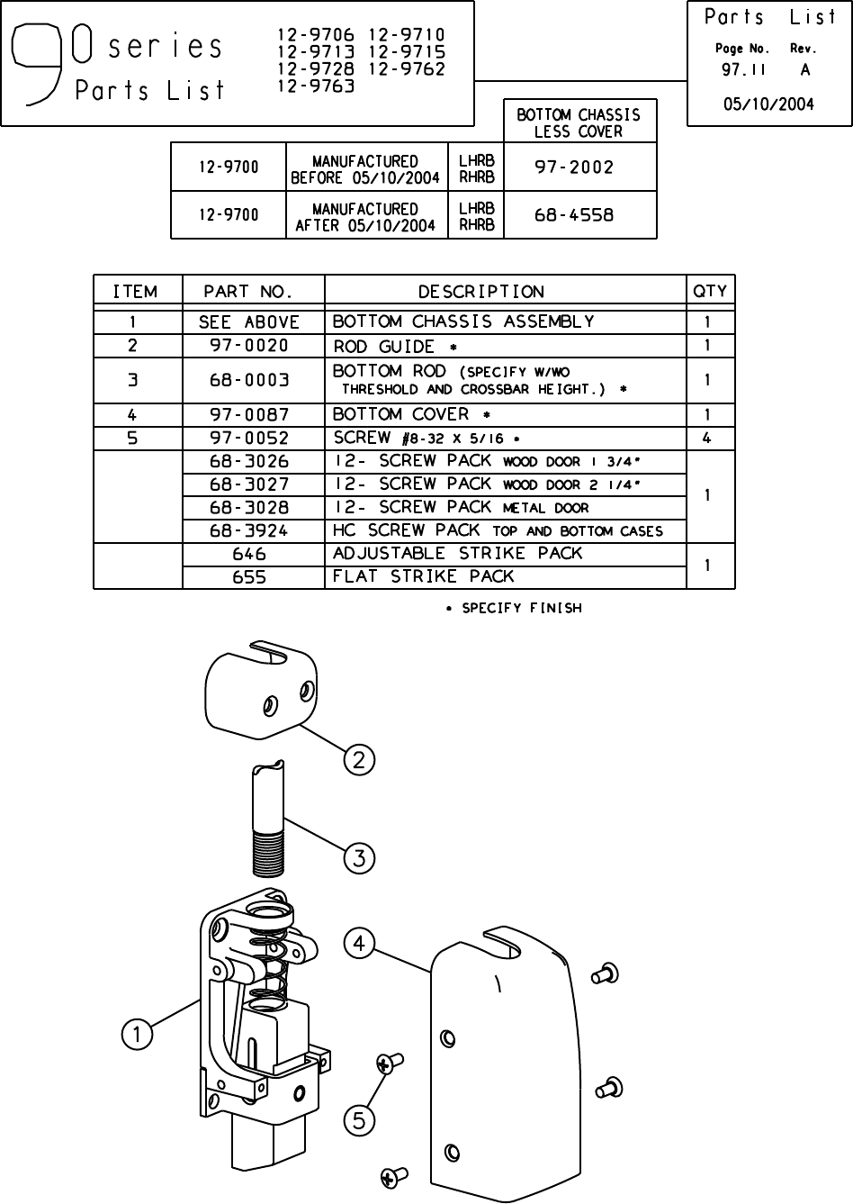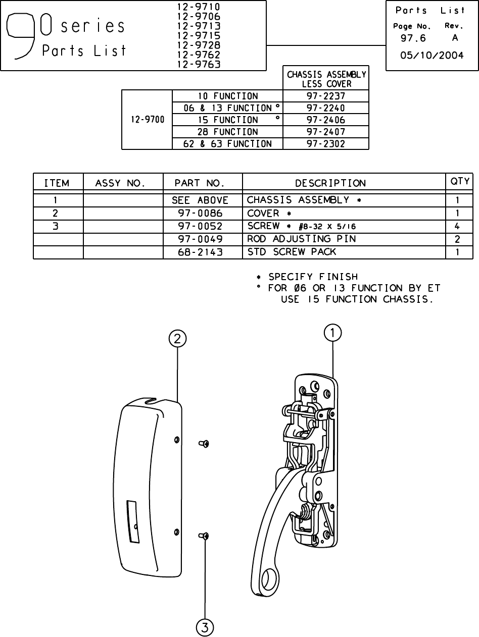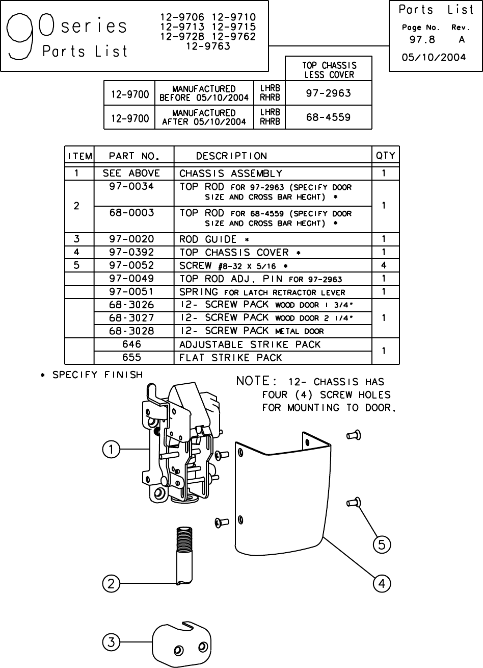 User Manual: Sargent SARGENT 90 Series Exit Device Parts List Parts Manual