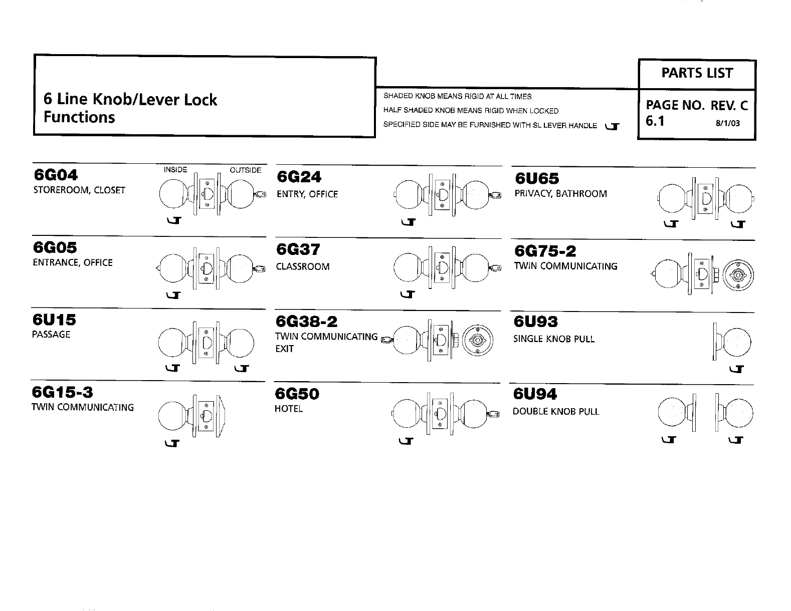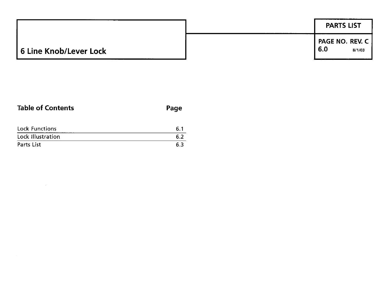 6 Line Knob/Lever Lock Parts List Page No. 6.3