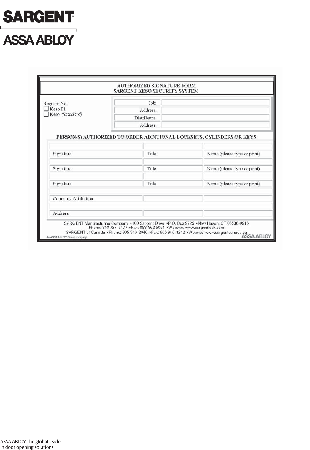 Copyright © 2002-2019 Sargent Manufacturing Company, an ASSA ABLOY Group company.